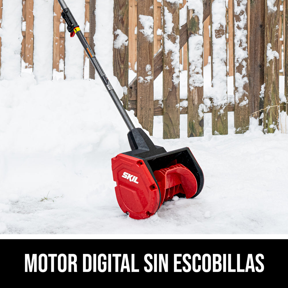 Despeje fácilmente entradas de garaje, aceras y terrazas con el aditamento de pala quitanieves SKIL PWR CORE 40™ de 12 pulgadas. Impulsada por el cabezal motriz del sistema multicabezal SKIL de 40 V, esta pala quitanieves inalámbrica despeja un camino de 12 pulgadas de ancho y lanza la nieve hasta 20 pies de distancia. El motor digital sin escobillas del cabezal motriz produce potencia eficiente de alto rendimiento para ofrecer una vida útil más prolongada de la herramienta sin el inconveniente de la gasolina. El cabezal motriz cuenta con un selector de dos velocidades para que usted pueda elegir entre maximizar la potencia o el tiempo de funcionamiento. La resistencia a la intemperie IPX4 proporciona durabilidad adicional en clima inclemente. Este aditamento de pala quitanieves eléctrica cuenta con una barrena de plástico, lo cual lo hace ideal para utilizarse en superficies de terrazas y patios para retirar la nieve sin esfuerzo. Este kit de pala eléctrica Incluye el cabezal motriz PWRCORE 40™, el aditamento de pala quitanieves, una batería PWRCORE 40™ de 4,0 Ah y un cargador automático PWRJUMP™.