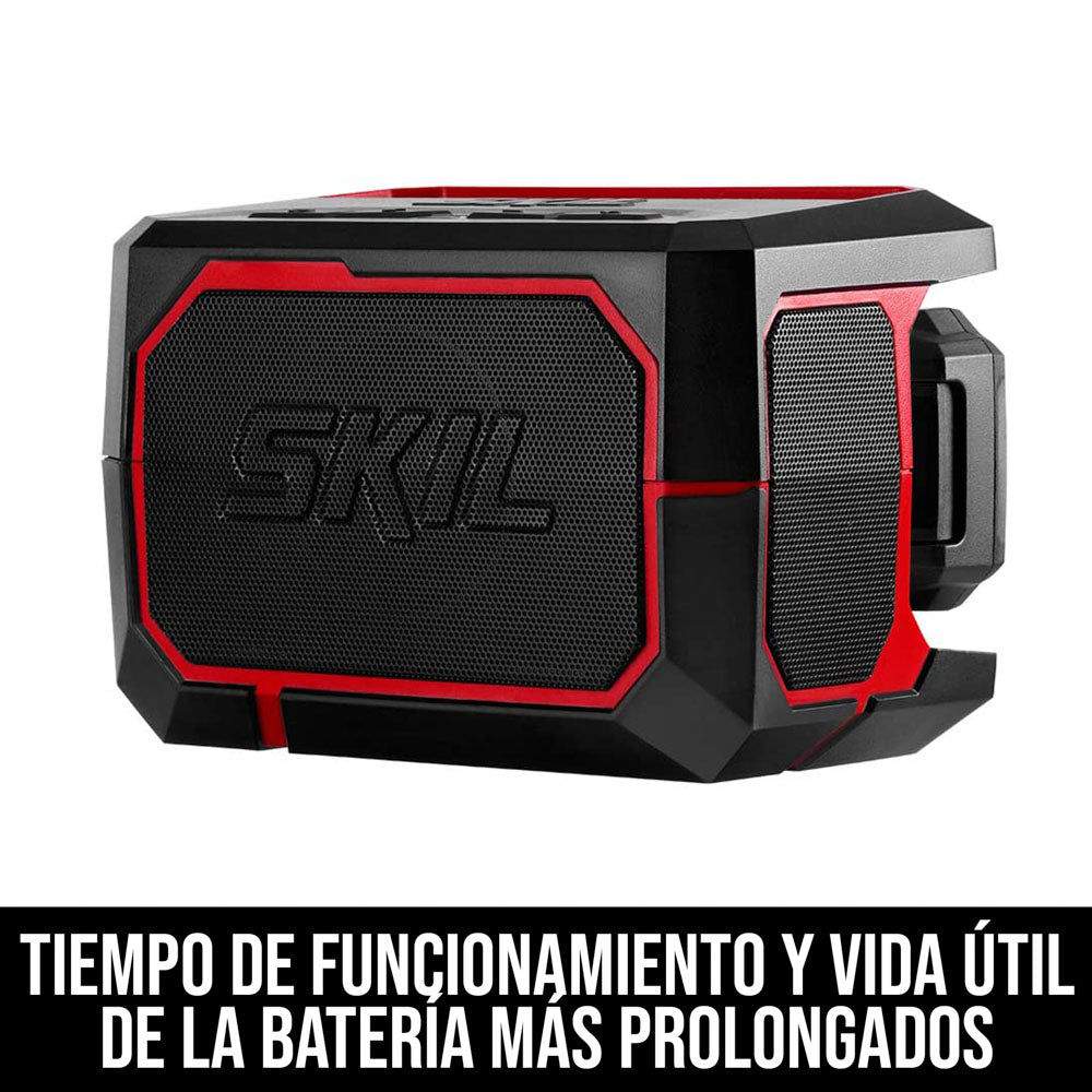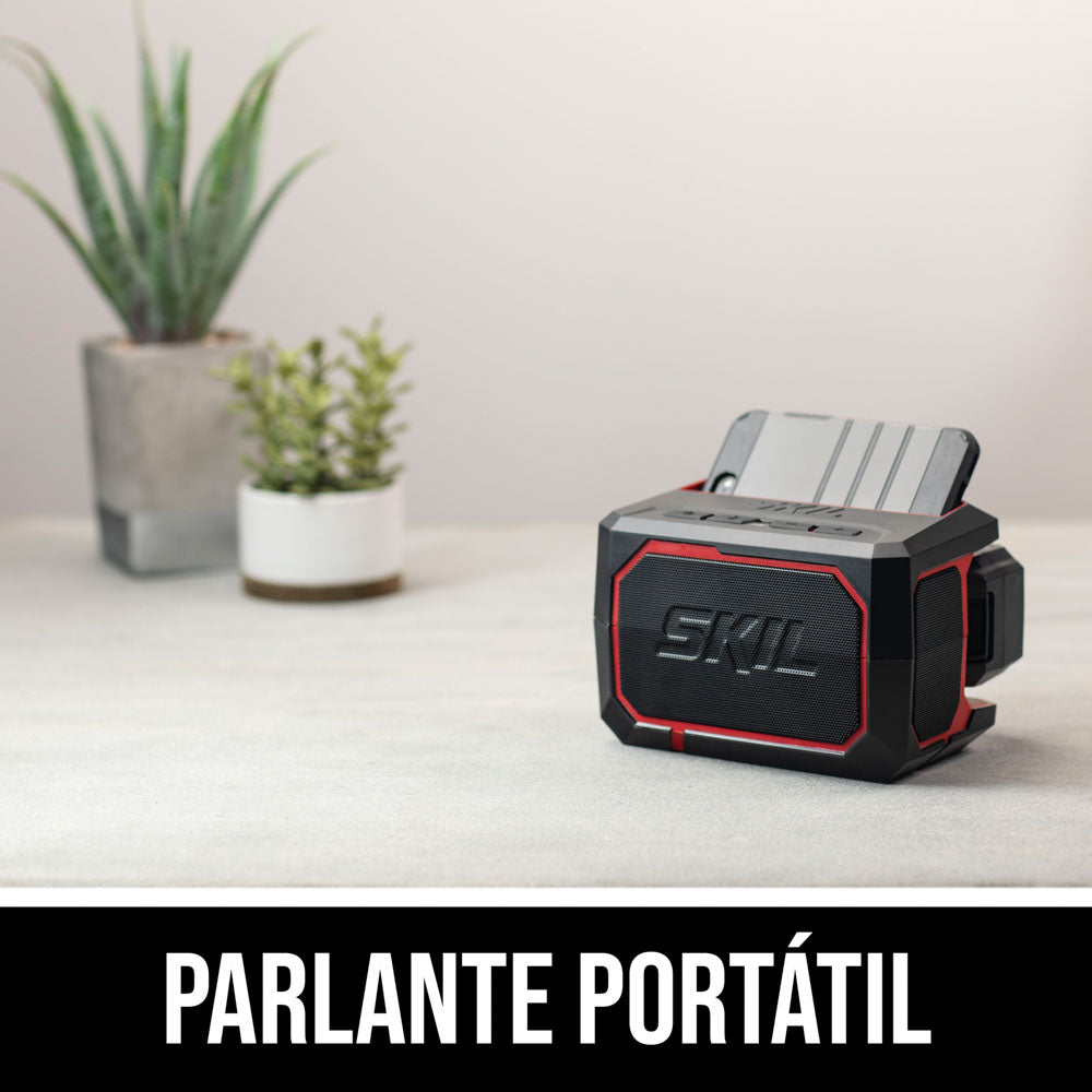 Ya sea que está trabajando en el garaje o va a trabajar lejos de casa, el parlante Bluetooth SKIL PWRCORE 12™ de 12 V produce un sonido premium dondequiera que usted vaya. Obtenga un sonido de graves mejorado con radiadores pasivos duales, conecte con conveniencia utilizando múltiples entradas y disfrute de un parlante portátil alimentado por la misma innovadora tecnología de baterías PWRCORE 12™ que las herramientas que usted tiene, con un tiempo de funcionamiento y una vida útil de la batería más prolongados.