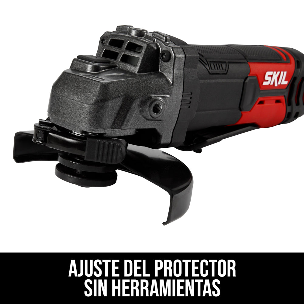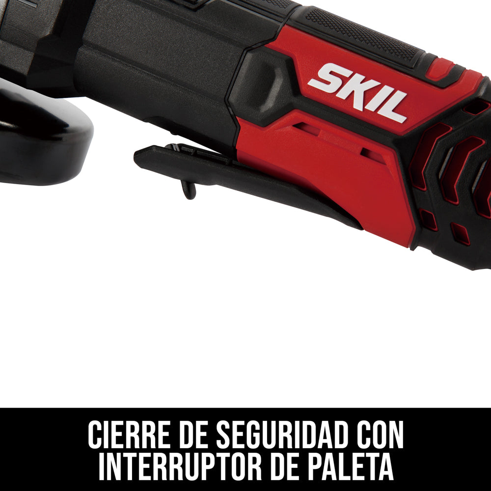 Potente y eficiente en las tareas. La amoladora angular SKIL de 8 A ofrece un potente motor que puede realizar una variedad de tareas. Esta herramienta ofrece una gama de características fáciles de usar, tales como un interruptor de paleta y almacenamiento de la llave de tuerca a bordo. El diseño ergonómico, el agarre de caucho blando y el mango lateral de 3 posiciones proporcionan más comodidad y control, para que usted pueda trabajar más tiempo.