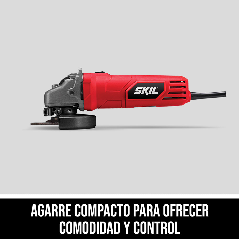 Amoladora angular compacta de 4-1/2 pulgadas diseñada con características innovadoras para amolar, lijar y afilar una variedad de materiales. Potente motor de 6,0 A. Almacenamiento especial de la llave de tuerca en la empuñadura.