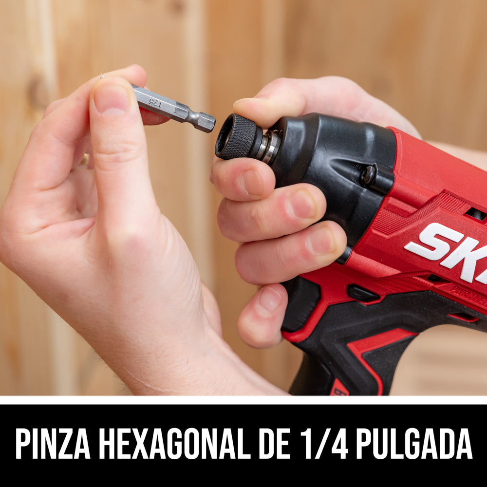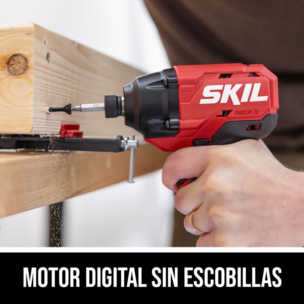 Tanto si usted está construyendo un lecho de jardín elevado como instalando soportes para estantes o realizando cualquier número de proyectos de garaje, atornille a través de maderas densas de manera rápida y precisa con el atornillador de impacto hexagonal de 1/4 de pulgada SKIL de 20 V sin escobillas. Este atornillador de impacto inalámbrico cuenta con un motor digital sin escobillas que produce hasta 1.700 pulgadas-libra de fuerza de torsión y hasta 3.500 IPM para atornillar a través de superficies gruesas y fijar pernos más grandes. Cuenta con dos ajustes de velocidad optimizados para ofrecer un control preciso o la máxima potencia. Su portaherramienta hexagonal de 1/4 de pulgada permite cambios de broca rápidos, mientras que la luz de trabajo LED proporciona una visibilidad máxima tanto con preiluminación como con iluminación remanente. El kit de atornillador de impacto incluye el atornillador de impacto inalámbrico de 20 V, una batería de 20 V y 2,0 Ah, un cargador de 20 V y una broca PH2 de 2 pulgadas.