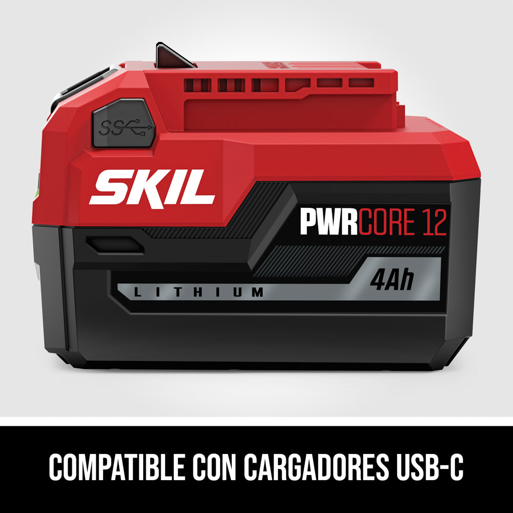 - COMPATIBLE CON CARGADORES USB-C: Cargue la batería con cualquier cargador SKIL de 12 V (vendido por separado) o cualquier bloque de carga USB-C doméstico