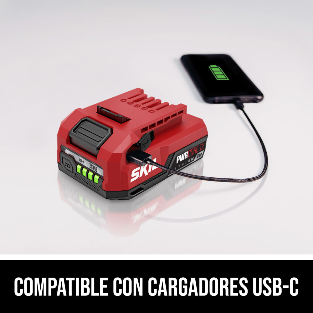 - COMPATIBLE CON CARGADORES USB-C: Cargue la batería con cualquier cargador SKIL de 12 V (vendido por separado) o cualquier bloque de carga USB-C doméstico