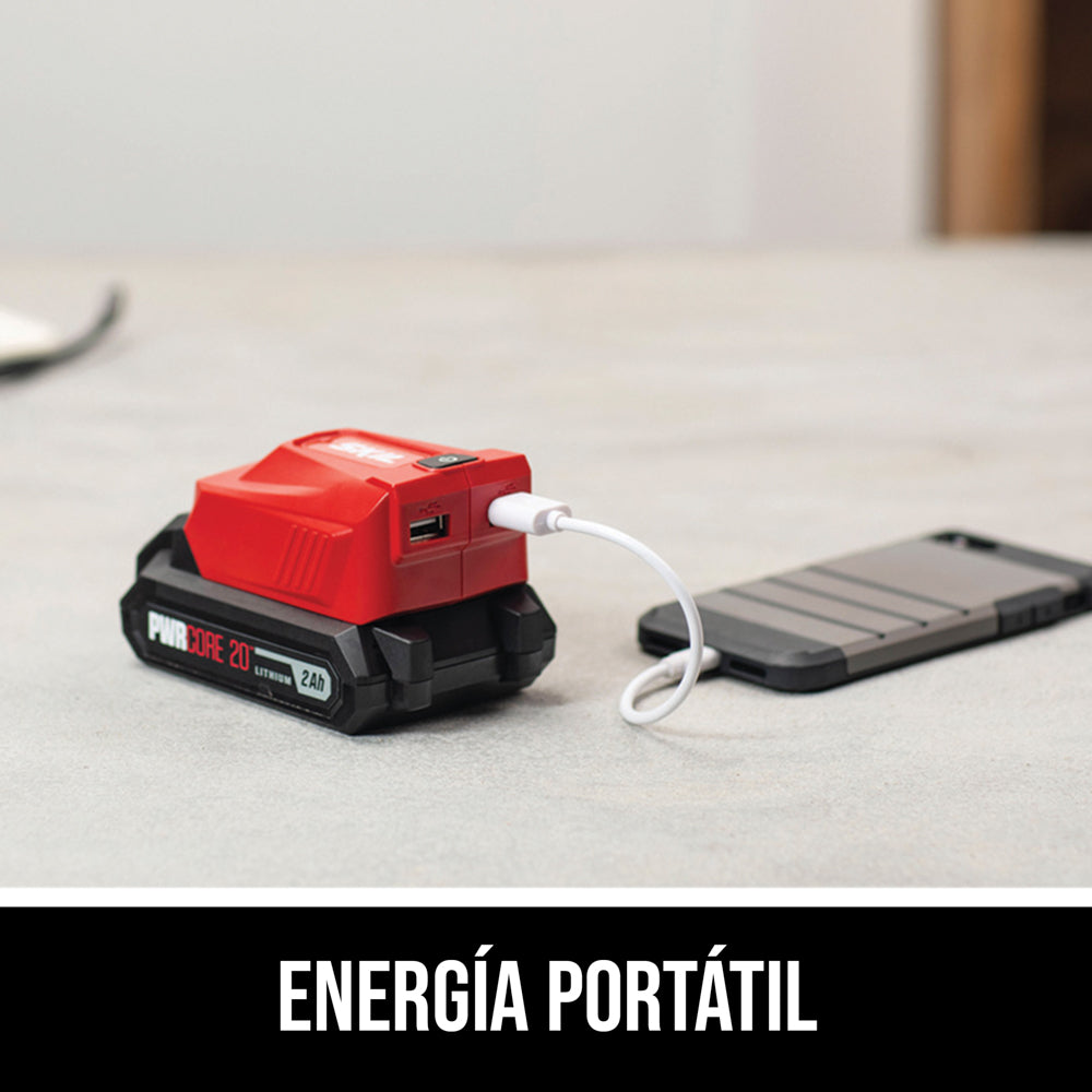 Su adaptador USB preferido. El adaptador USB SKIL PWRASSIST™ 20 se conecta a cualquier batería de 20 V. ¡Simplemente haga la conexión y suministre energía a sus dispositivos electrónicos en cualquier lugar!