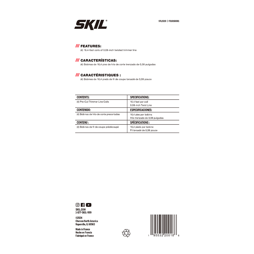 Qué está incluido: (4) Hilo de orilladora SKIL precortado de 0,08 pulgadas