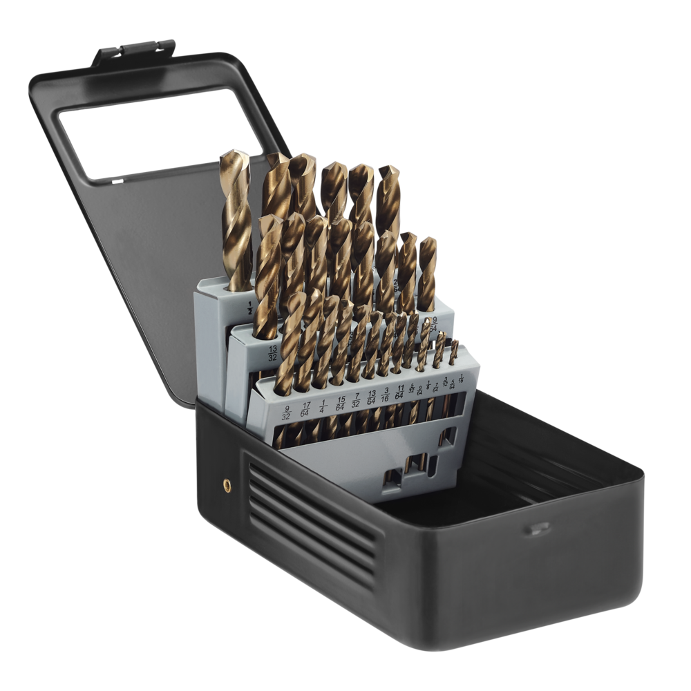 - EL CONJUNTO DE BROCAS INCLUYE: Brocas taladradoras de 1/16 de pulgada, 5/64 de pulgada, 3/32 de pulgada, 7/64 de pulgada, 1/8 de pulgada, 9/64 de pulgada, 5/32 de pulgada, 11/64 de pulgada, 3/16 de pulgada, 13/64 de pulgada, 7/32 de pulgada, 15/64 de pulgada, 1/4 de pulgada, 17/64 de pulgada, 9/32 de pulgada, 19/64 de pulgada, 5/16 de pulgada, 21/64 de pulgada, 11/32 de pulgada, 23/64 de pulgada, 3/8 de pulgada, 25/64 de pulgada, 13/32 de pulgada, 27/64 de pulgada, 7/16 de pulgada, 29/64 de pulgada, 15/32 de pulgada, 31/64 de pulgada y 1/2 pulgada