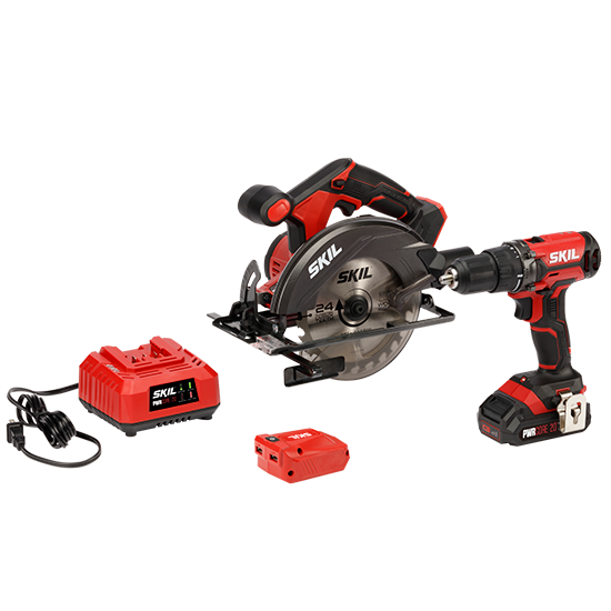 Kit de combinación de 3 herramientas SKIL PWR CORE 20™. Las necesidades de sus proyectos de bricolaje están cubiertas con el kit de combinación de 3 herramientas SKIL de 20 V. Apriete tornillos, ensamble muebles y taladre a través de superficies de madera, plástico o metal con un taladro atornillador inalámbrico. Corte a través de materiales de 2x4 y madera contrachapada con la sierra circular inalámbrica. Cargue sus dispositivos electrónicos con el adaptador de carga USB PWR ASSIST™ 20. Este kit de combinación incluye una batería de litio PWR CORE 20™ de 2,0 Ah y un cargador de 20 V.