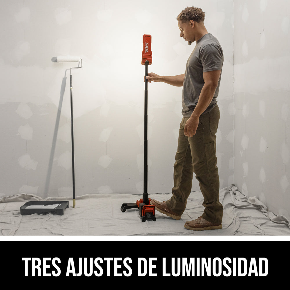 Dirija la luz hacia donde la necesite de manera rápida y fácil con la luz tipo torre compacta SKIL de 12/20 V, alimentada por baterías ya sea PWRCORE 12™ o PWRCORE 20™. Esta luz tipo torre compacta se configura rápida y fácilmente sin herramientas —simplemente despliegue hacia fuera las patas, extienda la pértiga y póngase a trabajar —. Active la luz y ajuste la luminosidad a tres niveles —200, 1.000 o 2.500 lúmenes— con el interruptor de control con el pie y dirija la luz hacia donde la necesite con más control a través de un pivoteo y un basculamiento de 270 grados. Disfrute de hasta 4,5 horas de tiempo de funcionamiento en el ajuste de 1.000 lúmenes con la batería PWRCORE 20™ de 2,0 Ah incluida. También puede cargar la batería o dispositivos personales con el puerto USB-C de 100 W de la batería. Cuando usted ha terminado el trabajo, la luz inalámbrica se colapsa y se pliega para ocupar un espacio compacto que facilita el almacenamiento y el transporte. El kit incluye la luz inalámbrica, una batería USB-C de 20 V y 2,0 Ah, un cargador USB-C PD de 20 W y un cable USB-C a USB-C.