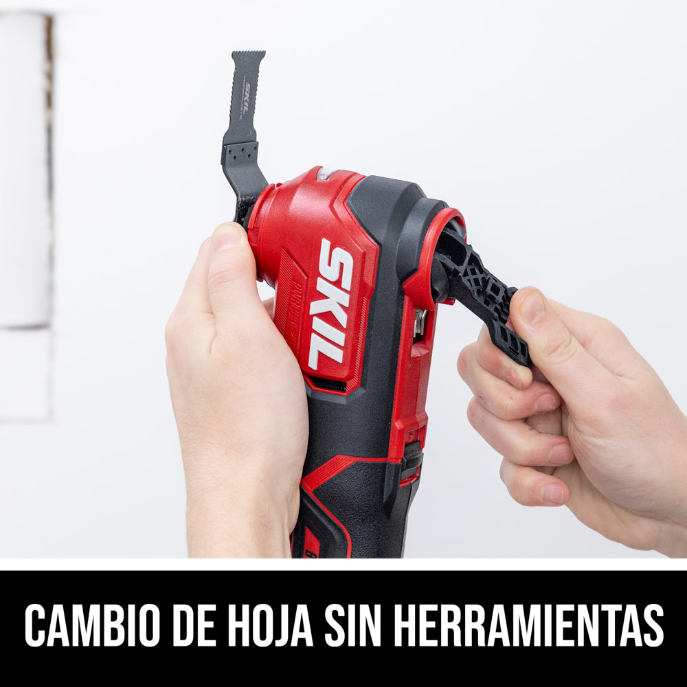 Lije, rasque, desbaste y más con el kit de multiherramienta oscilante SKIL de 20 V sin escobillas. Su motor digital sin escobillas produce hasta 17.000 OPM a través de seis velocidades con tecnología de velocidad constante para consumir más energía cuando se necesita para trabajar en materiales difíciles. Su ángulo de oscilación de 3,6 grados produce corte, lijado y rascado de alto rendimiento, y hace la transición fácilmente ente tareas como rascar para retirar alfombras y pisos, cortar panel de yeso para instalar tomacorrientes y lijar puertas con cambios de hoja sin herramientas. Su sistema de reducción de la vibración produce 80 por ciento menos vibración en comparación con los modelos SKIL sin la función de SRV, para que el trabajo sea más cómodo. Vea claramente el trabajo que esté realizando con la luz LED de a bordo. El kit incluye la multiherramienta oscilante, una batería de 20 V y 2,0 Ah, un cargador de 20 V, una almohadilla de lijar, (9) papeles de lija, una hoja de HCS para madera y una hoja semicircular de HCS.
