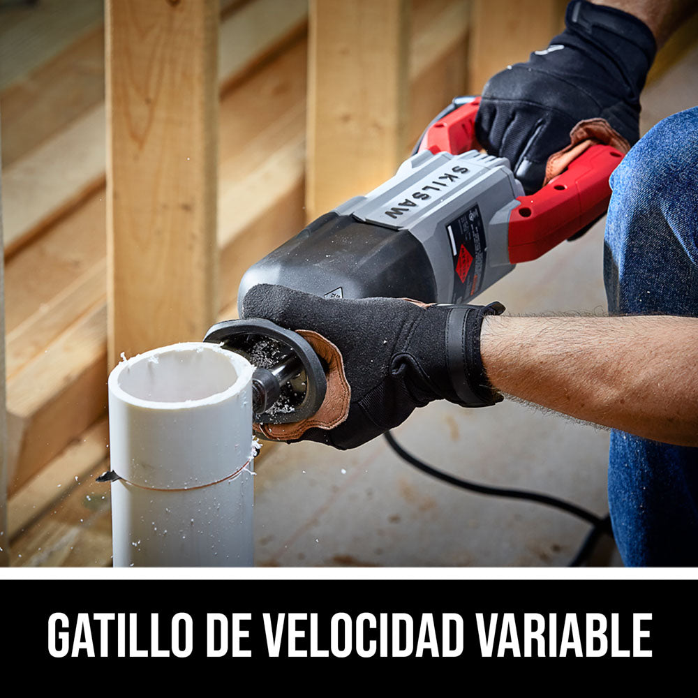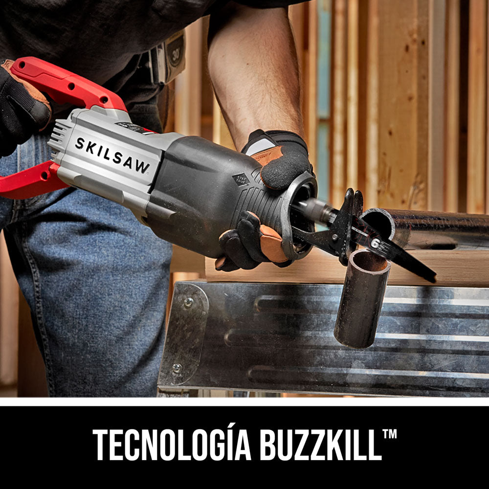 La sierra alternativa SKIL de 13 A se une a la legendaria línea de SKIL para ofrecer un rendimiento superior al de cualquier sierra alternativa que usted haya probado antes. Esta sierra cuenta con tecnología BUZZKILL™ patentada, que detiene de inmediato la vibración y suprime la vibración hasta un 35% mejor que la competencia. Eso significa cortes más cómodos y controlados que no lo agotarán a usted ni desgastarán su herramienta. Usted notará la diferencia con el primer apriete del gatillo. 13 A de potencia SKIL cortan con potencia rápidamente incluso a través de los materiales más difíciles. El gatillo de velocidad variable lo pone a usted en control, sin importar lo que esté cortando. Consiga la nueva sierra alternativa SKIL de 13 A con tecnología BUZZKILL™ que demuele más que tan solo la vibración.