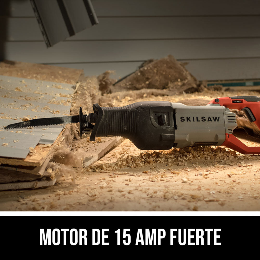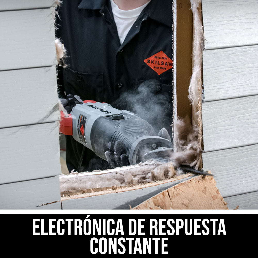 La sierra alternativa de servicio pesado de 15 A produce un rendimiento robusto y confiable como ninguna otra sierra alternativa que usted haya utilizado antes. La tecnología BUZZKILL™ patentada detiene de inmediato la vibración. El contrapeso lineal de armazón completo detiene la vibración en su origen, en lugar de moverla por todas partes y enviarla al usuario, como hacen otras sierras. El motor de 15 A produce potencia durante los trabajos más exigentes, mientras que el sistema electrónico Constant Response™ detecta la carga de trabajo e inmediatamente aumenta la potencia cuando usted la necesite. Eso significa cortes cómodos y controlados que no lo agotan a usted ni desgastan su herramienta. La sierra alternativa de servicio pesado de 15 A se une a la leyenda de rendimiento que es SKIL.