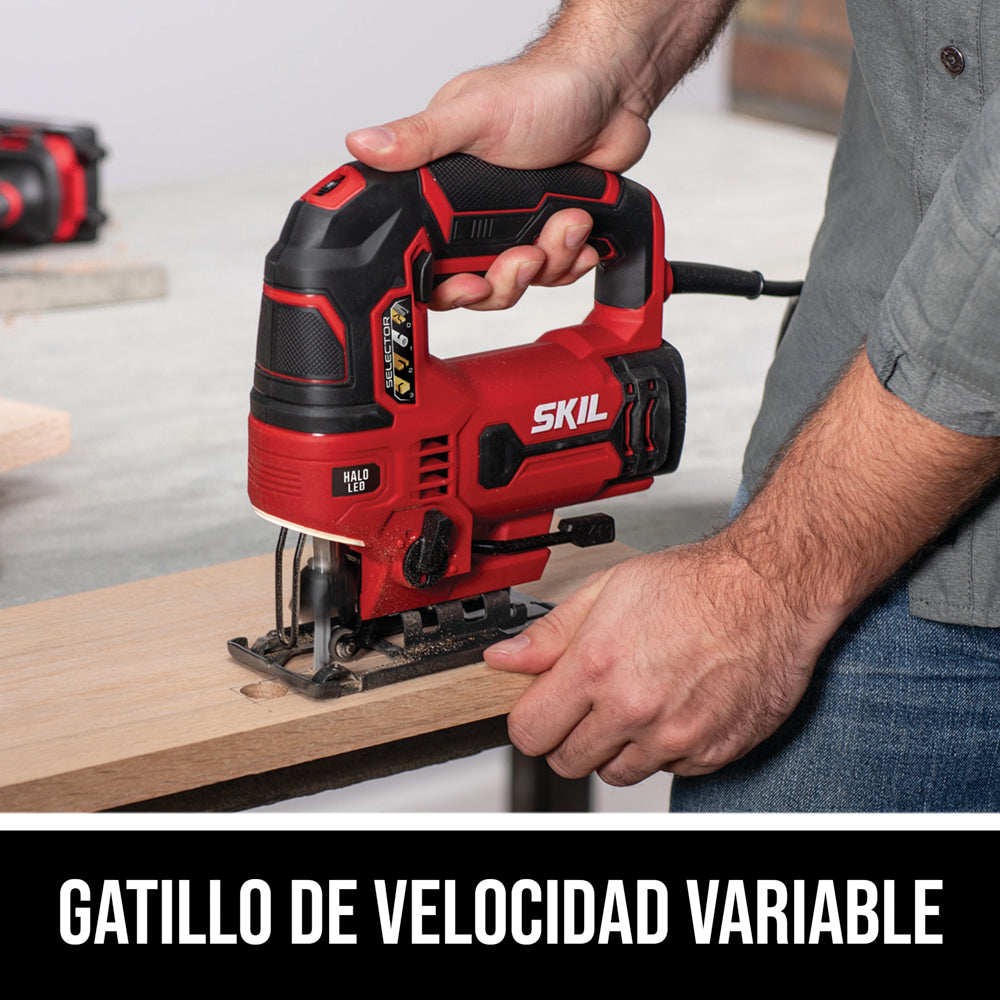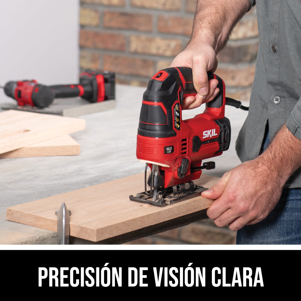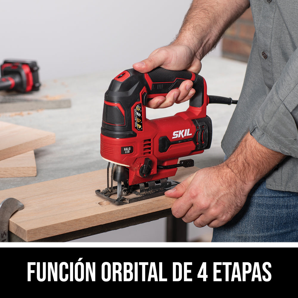 Precisa y bien equipada con características como la función orbital de 4 etapas, el control de velocidad y el soplado de polvo, que permiten que la sierra caladora SKIL de 6 A ofrezca precisión en una amplia gama de aplicaciones. Los cambios de hoja sin herramientas, el corte en ángulo y la luz Halo ponen a esta sierra caladora por delante del resto.