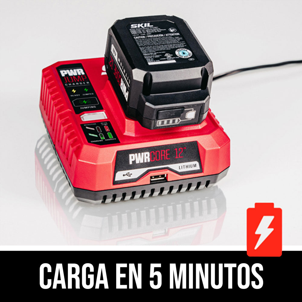- CARGA EN 5 MINUTOS: PWR JUMP™ carga la batería en solo 5 minutos; eso es suficiente potencia para apretar hasta 100 tornillos.