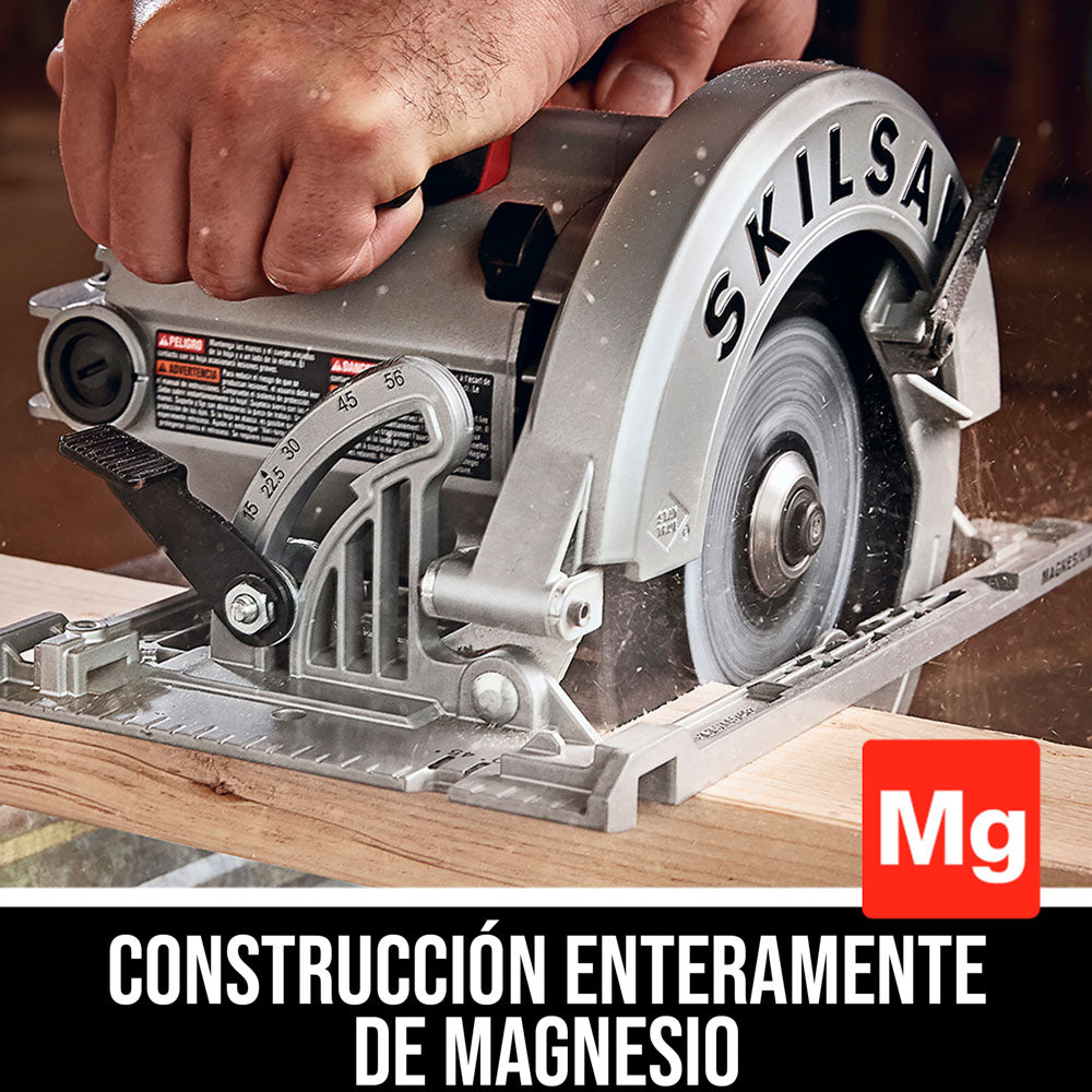 Presentamos la única sierra Skilsaw enteramente de magnesio con hoja a la izquierda SIDEWINDER™. Hecho específicamente para nuestras sierras y para profesionales como usted, el motor Dual-Field™ de 15 A de SKIL, que es el mejor de su clase, aumenta el enfriamiento y prolonga la vida útil de la herramienta. La robusta construcción enteramente de aluminio reduce el peso y va aún más lejos para disipar el calor del motor. Véalo todo: con su la hoja ubicada a la izquierda, usted tiene una visibilidad mejorada de la hoja y de la línea de corte para obtener una precisión mejorada. Además, con capacidad de biselado de precisión a 56°, usted obtiene la capacidad adicional para realizar una más amplia variedad de cortes. Ahora usted está listo para el éxito todo el día. Cuente con la durabilidad y rendimiento legendarios de SKIL para completar el trabajo.