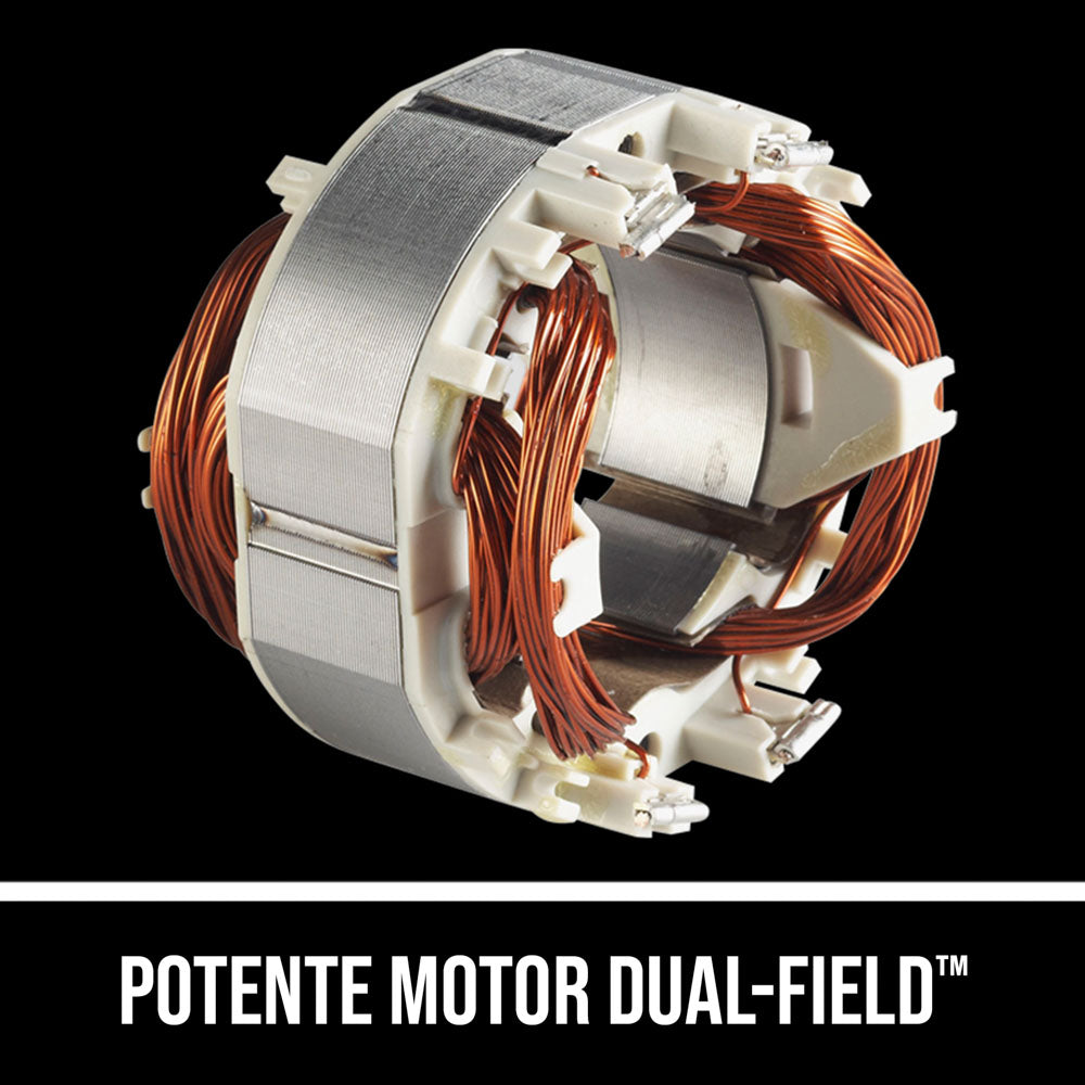 - El motor Dual-Field™ está especialmente diseñado para sierras, ya que proporciona mayor enfriamiento para prolongar la vida útil de la herramienta