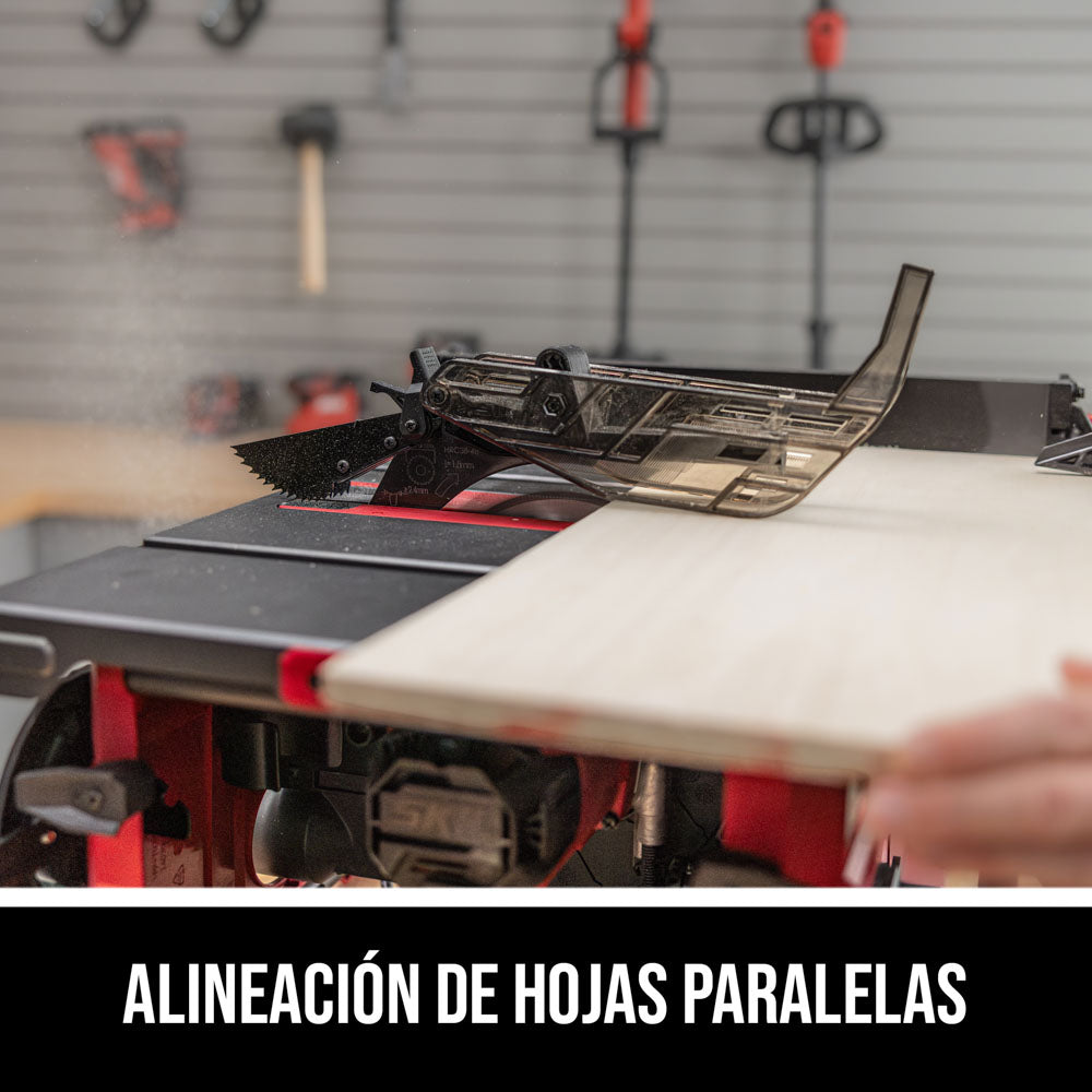 - ALINEACIÓN DE HOJAS PARALELAS: Microajuste disponible de la hoja para que Es paralela a la guía de corte y a la ranura de inglete