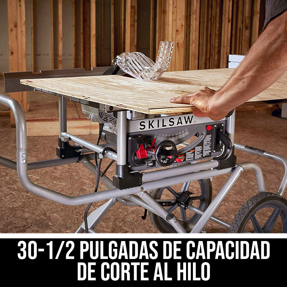 Qué está incluido: Sierra de mesa de tornillo sin fin de servicio pesado de 10 pulgadas SPT99 con base de soporte, hoja con puntas de carburo SKILSAW® de 24 dientes para cortar al hilo, calibre de ingletes, sistema de protector inteligente que incluye dispositivo antirretroceso, codo para polvo, placa de inserto, palo de empuje, llave de tuerca, tope-guía para cortar al hilo