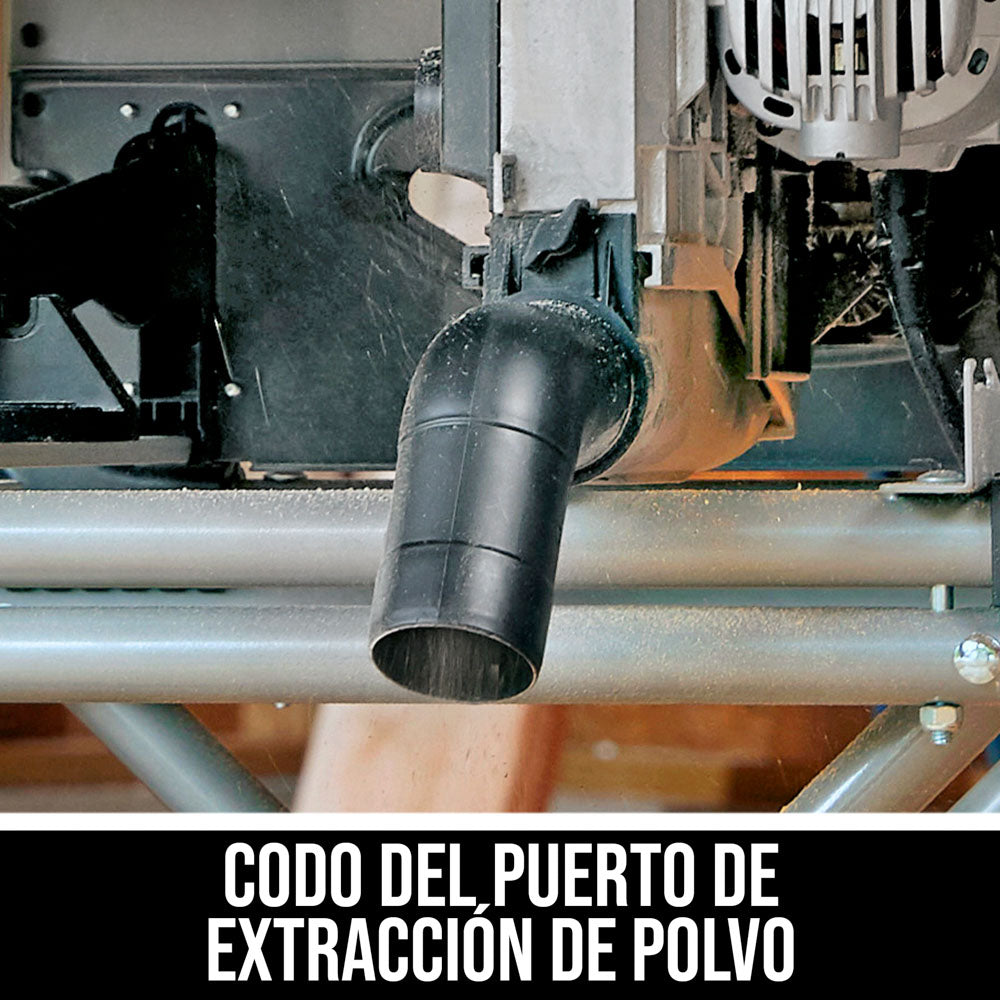 - El codo del puerto de extracción de polvo retiene los residuos en un área para limpieza