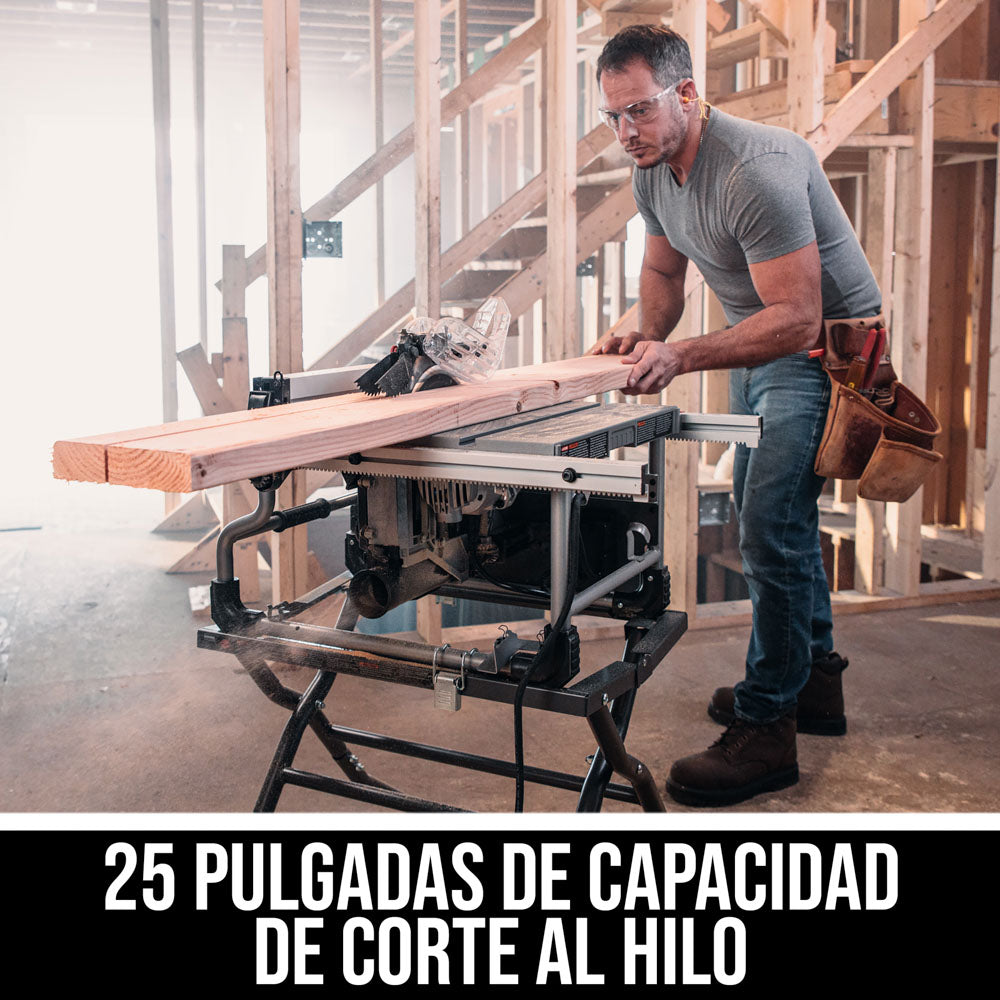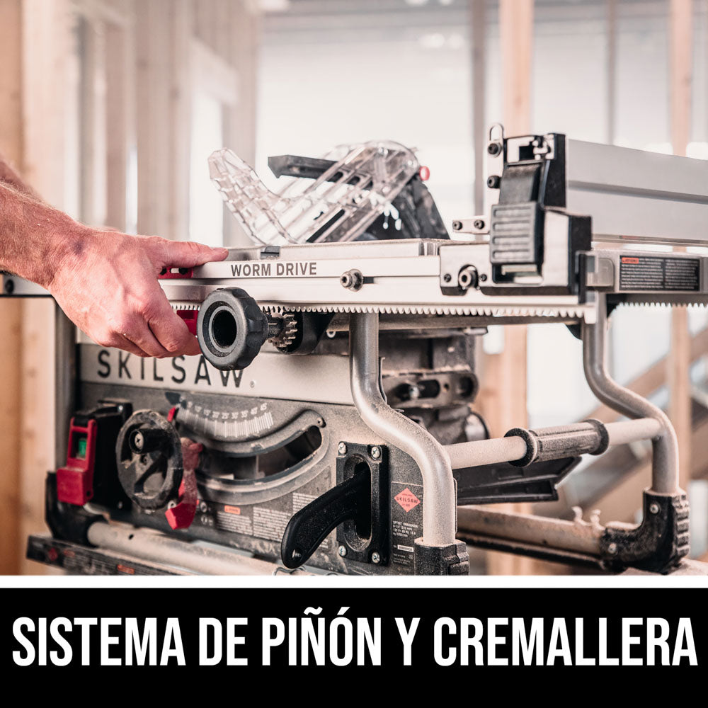 Qué está incluido: Sierra de mesa de tornillo sin fin portátil de 8-1/4 pulgadas (210 mm) SKILSAW® SPT99T, hoja de carburo SKILSAW® de 24 dientes para cortar al hilo, calibre de ingletes, tope-guía de piñón y cremallera, sistema de protector inteligente que incluye dispositivo antirretroceso, placa de inserto, palo de empuje, llave de tuerca.