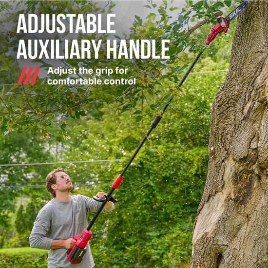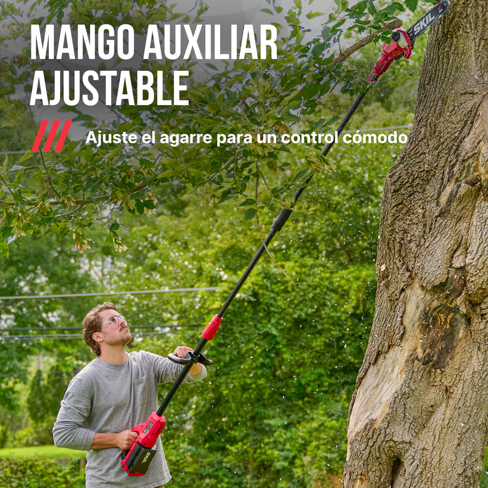 - MANGO AUXILIAR AJUSTABLE - Seleccione el agarre que prefiera para tener control adicional cuando corte por encima de la cabeza; la sierra de pértiga pesa menos de 7,5 lb con la batería instalada