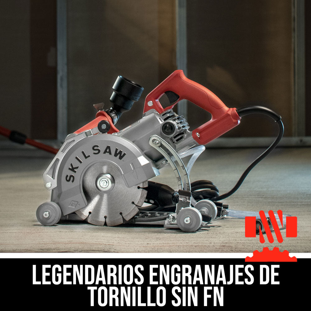 Cuando hay concreto que conquistar, la sierra Skilsaw de tornillo sin fin para concreto hace que el trabajo sea mucho más fácil. Es la primera sierra completamente integrada del mundo diseñada específicamente para estriar y cortar concreto de manera precisa. Olvide modificar una sierra vieja. Esta tiene nuestro legendario tren de potencia de tornillo sin fin de SKIL y además un cierre de inmersión ajustable Cut-Ready™ especial y un puntero pivotante para ofrecer una precisión y una conveniencia sin igual. Al utilizar la sierra tanto en húmedo como en seco, el sistema de gestión del polvo dual integrado elimina retira el polvo del paso. Y los soportes y sujetadores resistentes a la oxidación resisten la corrosión para ofrecer una larga vida útil. Armado con los engranajes de tornillo sin fin, usted realizará con potencia los trabajos de concreto más difíciles. Todo es parte de la leyenda de rendimiento que es SKIL.