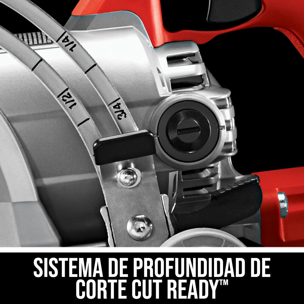 - El puntero delantero retráctil guía la sierra a lo largo de la línea de corte y se retrae para espacios reducidos
