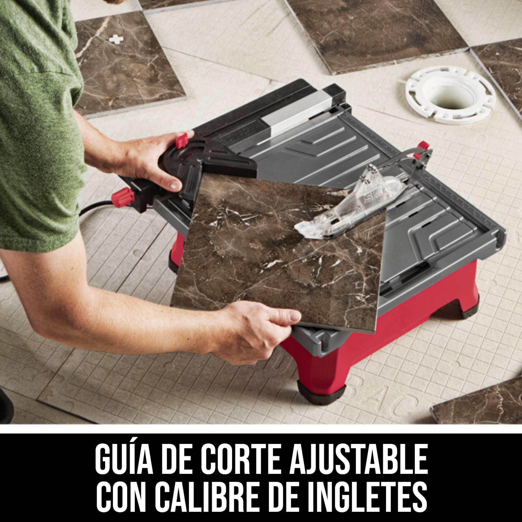 - Corta en bisel baldosa a 0, 22,5 y 45 grados, con lo cual ofrece flexibilidad para diferentes tipos de corte