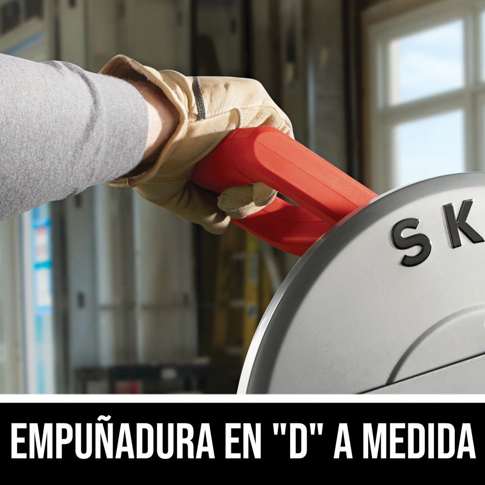 Con la fuerza y el coraje legendarios de una herramienta SKIL, esta ligera y eficaz sierra tronzadora para metal es un poderoso aliado que usted querrá tener a su lado. Nuestra sierra tronzadora abrasiva de 14 pulgadas pesa 33,9 lb, por lo que va del camión al sitio de construcción y de regreso sin añadir esfuerzo a su día. Pero ser ligera no significa que sea menos robusta. Diseñada con estabilidad en mente, la base grande de 11 x 18-1/2 pulgadas garantiza que esta máquina pueda con todo lo que usted le ponga en su camino. La versátil empuñadura en "D" le proporciona a usted comodidad y control corte tras corte. De parte del nombre que generaciones de profesionales ya conocen, la sierra tronzadora abrasiva de 14 pulgadas SKILle permite realizar los trabajos más difíciles.