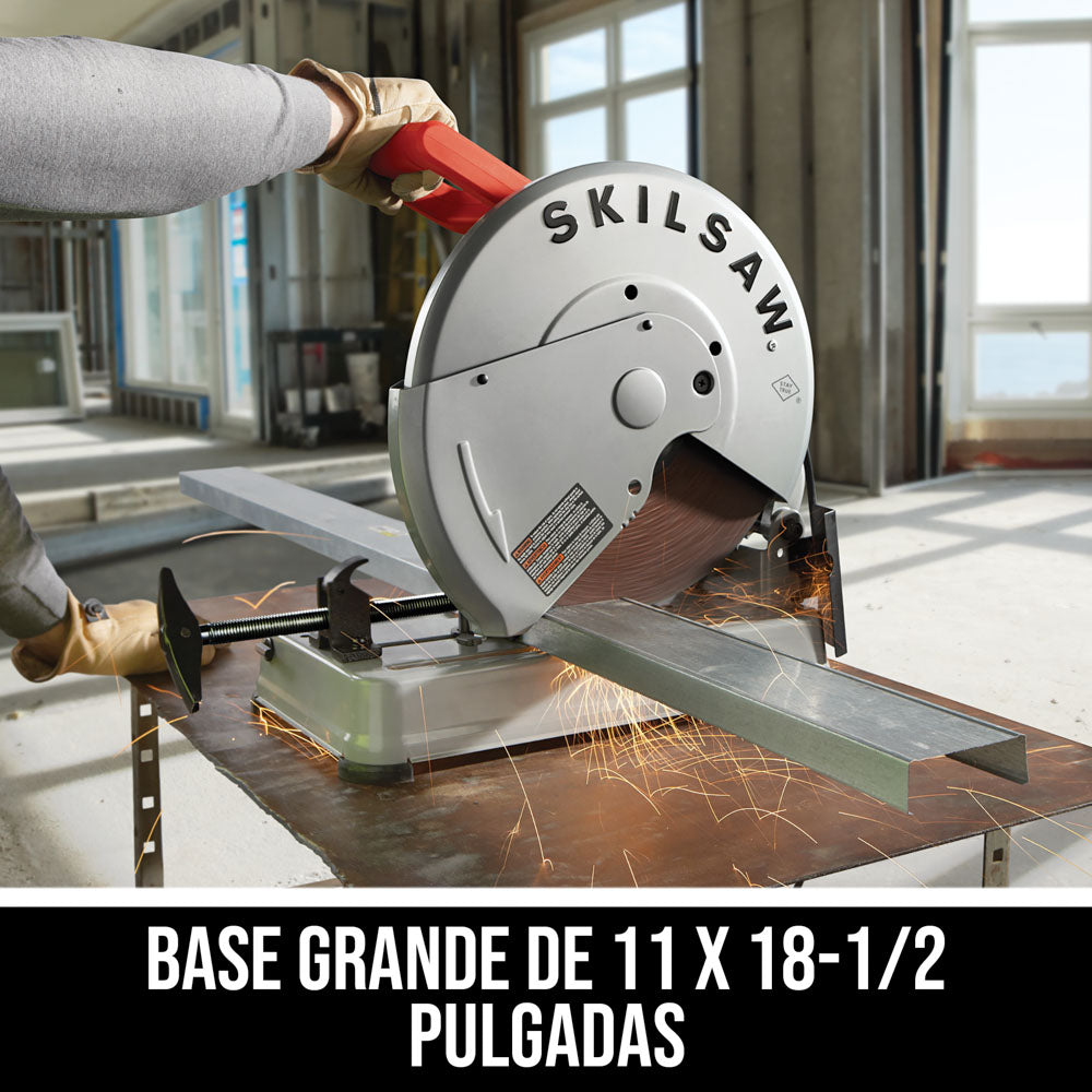 Qué está incluido: Sierra tronzadora abrasiva de 14 pulgadas (35,6 cm) SPT84, disco de corte abrasivo de 14 pulgadas SKILSAW® para cortar metal, llave de tuerca (almacenada en la base)