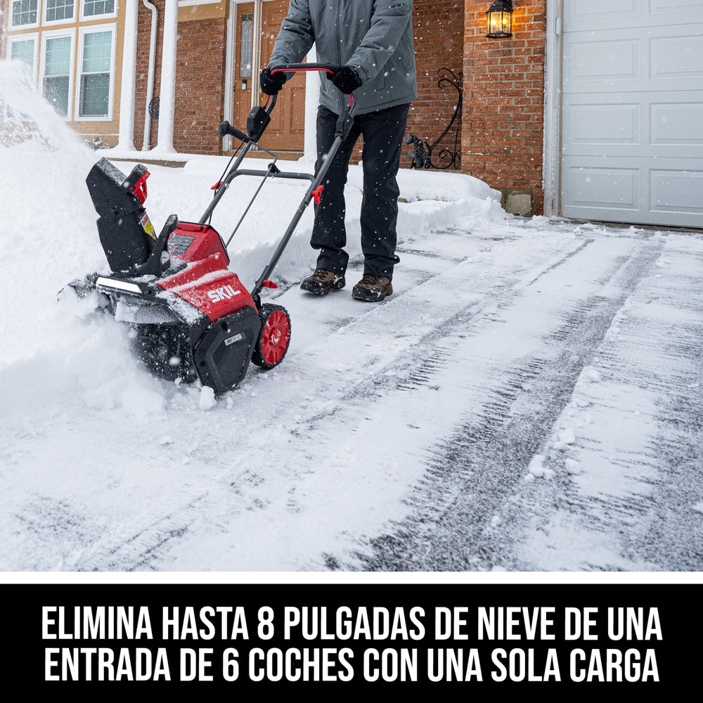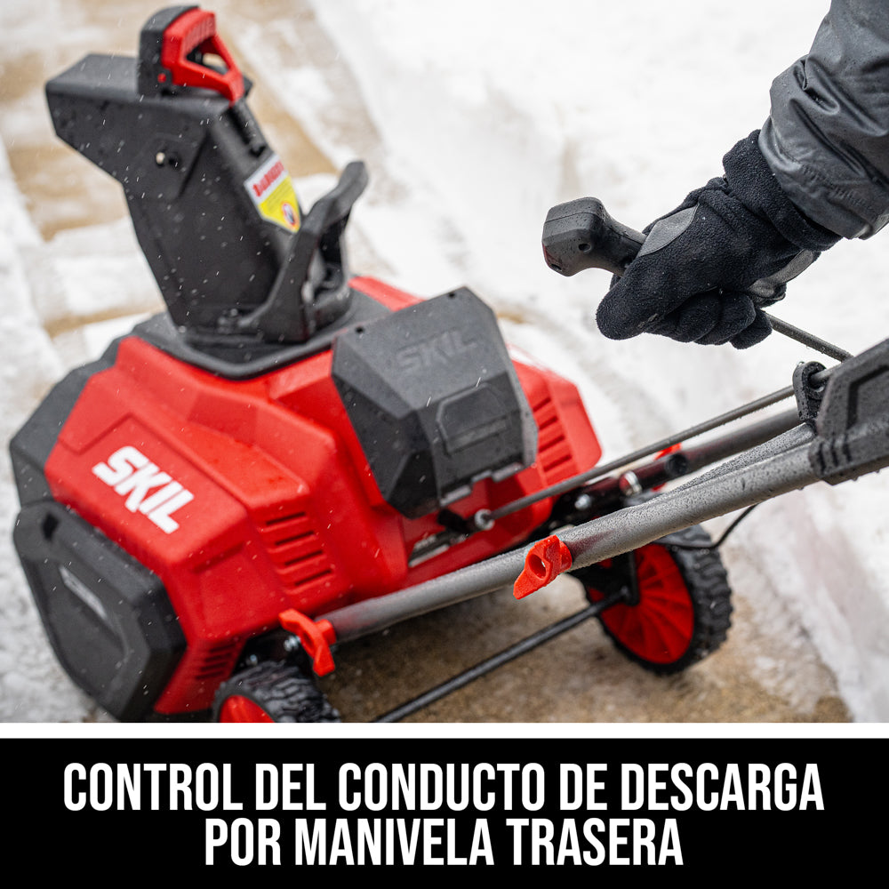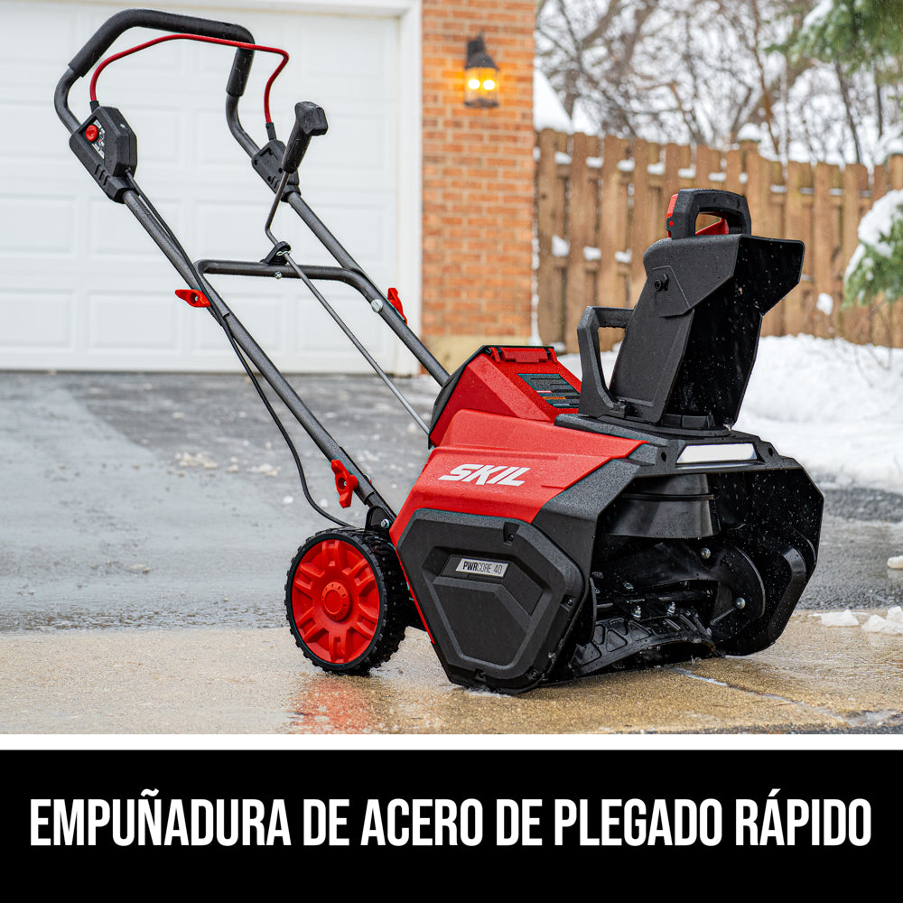 Lance la nieve hasta 30 pies de distancia alejándola de su camino con el soplador de nieve de etapa sencilla SKIL PWRCORE 40™ de 20 pulgadas. Este soplador de nieve inalámbrico cuenta con un motor digital sin escobillas que produce una potencia eficiente de alto rendimiento para ofrecer una vida útil más prolongada de la herramienta sin el inconveniente de la gasolina. El control del conducto de descarga por manivela trasera permite realizar cambios rápidos y fáciles de la dirección del conducto de descarga de 180 grados. Este soplador de nieve alimentado por batería cuenta con una barrena de acero con punta de caucho para realizar una limpieza mejorada del pavimento y una luz delantera LED mejora la visibilidad en condiciones de poca luz. Su empuñadura de acero de plegado rápido permite un almacenamiento compacto fácil cuando no se esté utilizando entre temporadas. Este kit de soplador de nieve inalámbrico incluye el soplador de nieve de etapa sencilla de 40 V, una batería PWRCORE 40™ de 6,0 Ah y un cargador automático PWRCORE 40™ PWRJUMP™.
