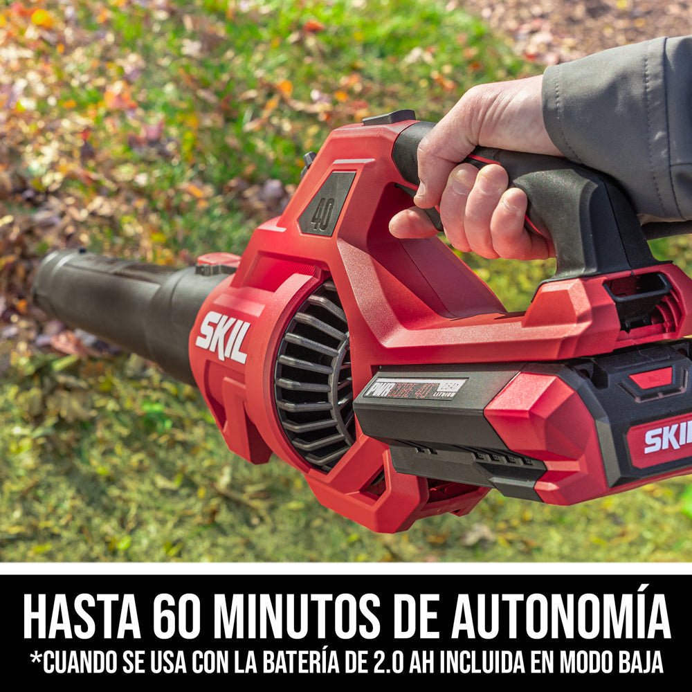 Ditch the gas leaf blower for a smarter solution like the SKIL 40V 460CFM Leaf Blower. This cordless leaf blower is powered by PWRCORE 40™ lithium battery technology to deliver long runtimes along with a digital brushless motor that delivers air speeds up to 120 MPH for performance to clear heavy leaves and debris. Its variable speed control is optimized for any application with turbo boost to power through heavier debris. The battery-powered leaf blower runs for up to 60 minutes on low with the included 2.0Ah battery. IPX4-rated weather resistance provides added durability for use in tough weather conditions, and a quick-release tube ensures compact storage between uses. The electric leaf blower kit includes a 2.0Ah PWRCORE 40™ battery and 60W charger.
