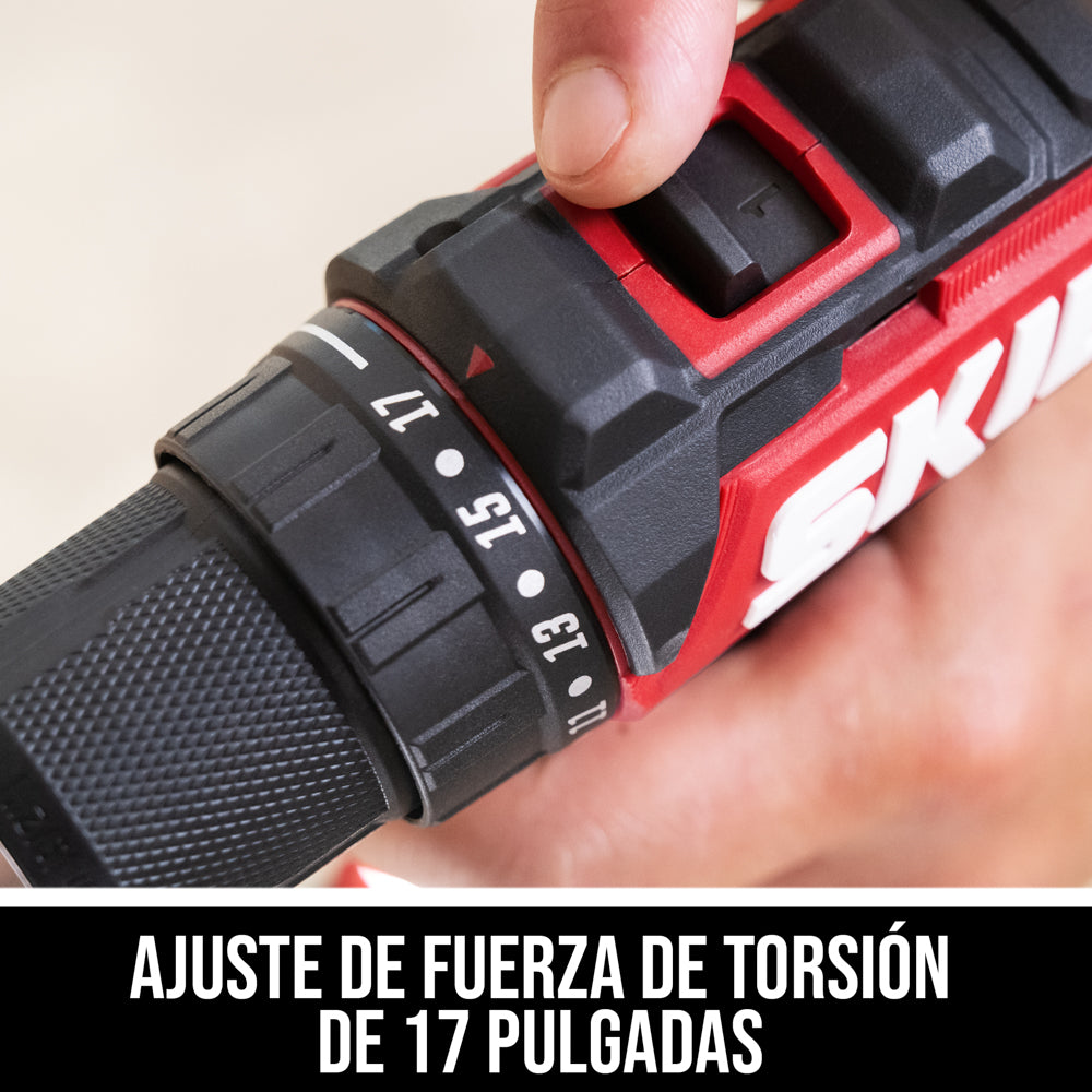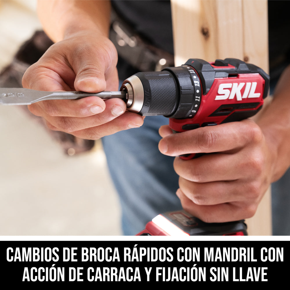 Taladre con potencia y precisión una gran variedad de superficies con el taladro atornillador SKIL PWR CORE 20™ de 20 V sin escobillas de ½ pulgada. Este taladro inalámbrico compacto cuenta con un motor digital sin escobillas que ofrece hasta 450 pulgadas-libras de torque en cada perforación, y su gatillo de velocidad variable, 17 ajustes de torque y modo taladro proporcionan un control máximo para cada proyecto. Cambie las brocas de forma rápida y sencilla con su portabrocas de ½ pulgada de trinquete sin llave de una sola manga, e ilumine su área de trabajo hasta por 10 minutos con la tira de luz LED con preiluminación y persistencia luminosa. El taladro atornillador incluye una batería PWR CORE™ de 2.0 Ah y 20 V con carga rápida bidireccional para cargar la batería o sus dispositivos personales mediante su puerto USB-C integrado. Este kit de taladro eléctrico inalámbrico incluye el taladro atornillador inalámbrico de 20 V, una batería de litio PWR CORE 20™ de 2,0 Ah y 20 V USB-C, un cargador USB-C PD de 45 W y un cable de carga, un clip para cinturón y una punta de atornillar.