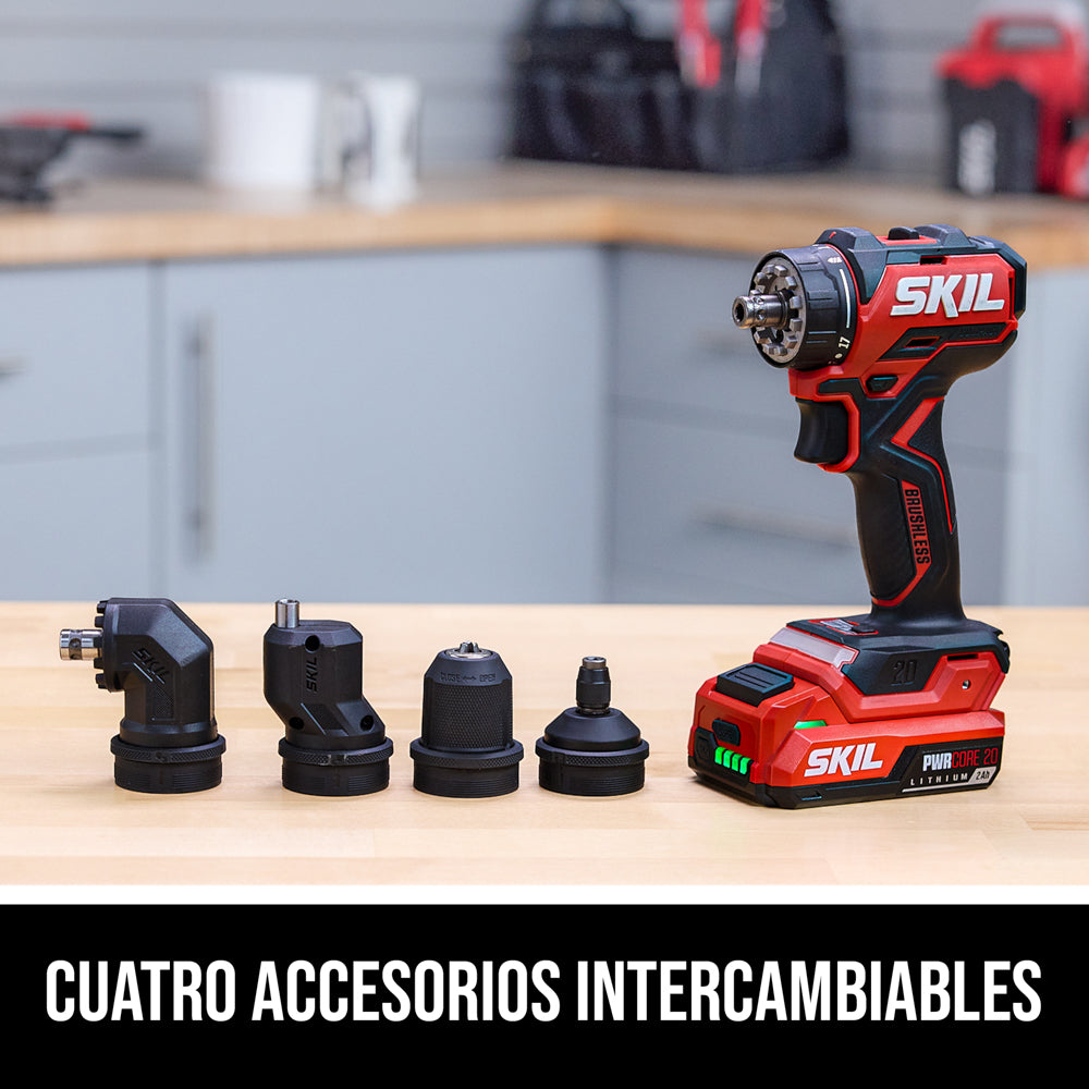 Kit de taladro atornillador multicabezal compacto de 20 V sin escobillas