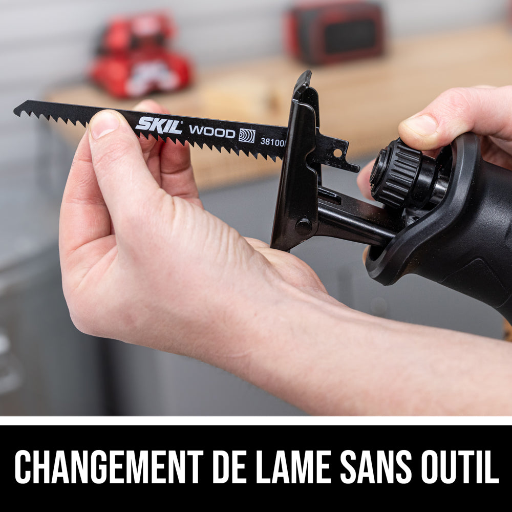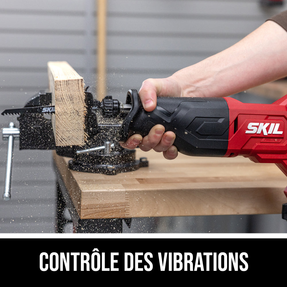 Que vous coupiez un poteau pour installer une boîte aux lettres, que vous démontiez des poteaux existants pour la rénovation d’une salle de bain ou que vous élaguiez des buissons et des branches d’arbre, coupez en toute confiance avec la scie alternative sans balais de 20 V de SKIL. Cette scie alternative fil est équipée d’un moteur numérique sans balais qui offre des performances de coupe élevées, jusqu’à 3 200 CPM, et d’une gâchette de réglage de la vitesse pour assurer un contrôle précis. Sa boîte d’engrenages contrebalancée permet de réduire les vibrations, tandis que son sabot pivotant réglable permet de réaliser des coupes en douceur et assure un meilleur contrôle. Sa capacité de changement de lame sans outil permet de changer rapidement de lame entre deux tâches. Le kit comprend la scie alternative électrique sans fil, une pile de 20 V, 2,0 Ah, un chargeur de 20 V, une lame pour le bois et une clé hexagonale.