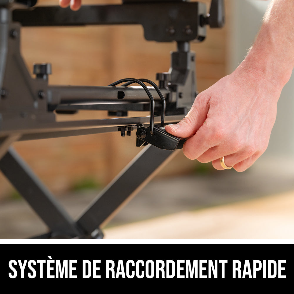- COMPATIBILITÉ AVEC L’ÉTABLI - Compatible avec le support portable pour scie à onglet (SRS0001) et la boîte à outils roulante à empilement de trois pièces (TSM0002-3), vendus séparément