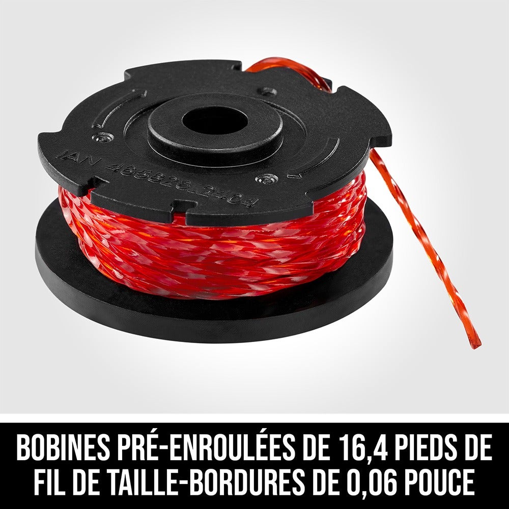 - Bobines pré-enroulées de 16,4 pi de fil pour taille-bordure de 0,06 po