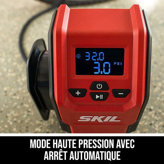 - MODE HAUTE PRESSION AVEC ARRÊT AUTOMATIQUE - Gonfle rapidement les pneus, les équipements de sport, et plus encore avec les mains libres.