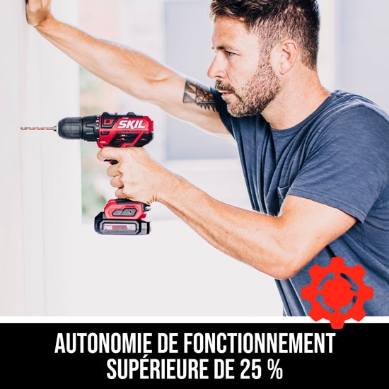 Ce qui est inclus: Perceuse/Visseuse ; Visseuse à percussion ; Pile de 2,0 Ah avec charge mobile PWR ASSIST™ ; Chargeur PWR JUMP™ ; Agrafes de ceinture (2) ; Embouts PH2 (2)