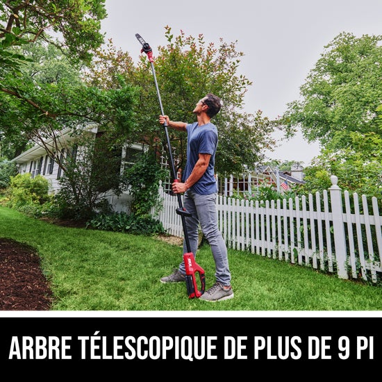 - ARBRE TÉLESCOPIQUE & TÊTE ANGULAIRE - L’arbre télescopique en aluminium s’étend de 7,5 à 10 pi, et la barre et la chaîne angulaires de 10 po offrent un excellent contrôle de coupe et une grande polyvalence.