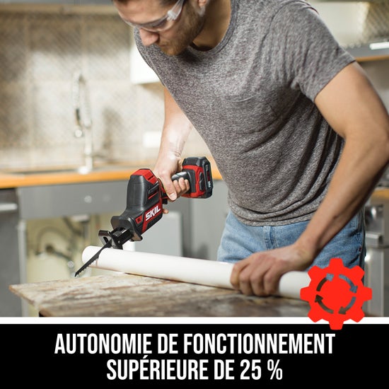 Le kit de scie alternative SKIL PWRCORE 12™ comprend une pile au Lithium PWRCORE 12™ avec charge mobile PWRASSIST™ et chargeur PWRJUMP™. Qu’il s’agisse de réparations ou de projets de remodelage et de démolition majeurs, cette scie électrique compacte effectue des coupes précises dans les endroits difficiles d’accès et en hauteur. Son moteur sans balais compact et performant rend cette scie électrique manuelle suffisamment puissante pour couper le bois, les tuyaux en PVC, les branches d’arbres et le métal.