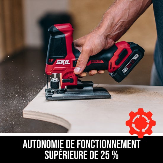 La marque qui a introduit la première scie portative dans la catégorie des outils électriques propose le kit de scie sauteuse compacte SKIL PWRCORE 12™ sans balais de 12 V. Cette scie sauteuse sans fil avec pile et chargeur est conçue pour réaliser des coupes de bois précises sur une variété de surfaces - qu’il s’agisse de coupes droites, courbes ou d’angles complexes, la scie sauteuse SKIL de 12 V s’attaque au travail à accomplir. Le moteur sans balais fournit une puissance compacte, une grande efficacité et des performances exceptionnelles, tandis que la pile au lithium-ion PWRCORE 12™ permet à l’outil de fonctionner 25 % plus longtemps avec une autonomie deux fois supérieure. La sélection orbitale à 4 niveaux fournit une grande efficacité de coupe pour différents matériaux, produisant jusqu’à 3 000 coups par minute, tandis que la souffleuse de poussière intégrée et la lumière à DEL Halo permettent de voir des lignes claires pour réaliser une coupe précise. Le kit de scie sauteuse PWRCORE 12™ sans balais de 12 V comprend une pile au lithium-ion de 2,0 Ah, un chargeur mobile PWRASSIST, un chargeur PWRJUMP™ (25 % de la capacité de charge de la pile en seulement 5 minutes) et une clé à biseau pour régler l’angle des lames de scie sauteuse.