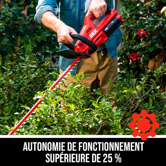 Obtenez des performances de pointe dans un taille-haie alimenté par la technologie au lithium SKIL PWRCORE 40™. Ajoutez plus de puissance et de durabilité à votre remise à outils avec un taille-haie alimenté par un moteur numérique sans balais. Avec des lames à double action pour des coupes propres et efficaces, des lames en acier trempé pour une plus grande longévité et un moteur numérique sans balais pour un fonctionnement plus long sans les inconvénients de l’essence. Ce kit de taille-haie comprend une pile de 2,5 Ah PWRCORE 40™ et un chargeur Auto PWRJUMP™.