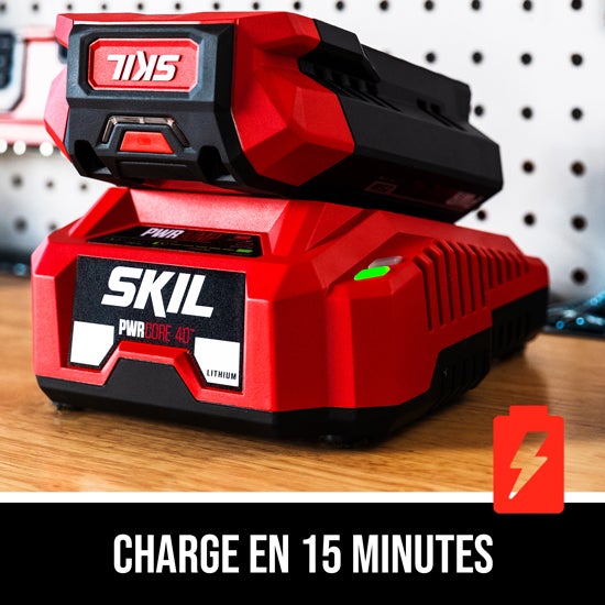 - Charge en 15 minutes- Auto PWRJUMP™ charge la pile de 0 à 30 % en seulement 15 minutes (sur la base d’une pile de 2,5 Ah).