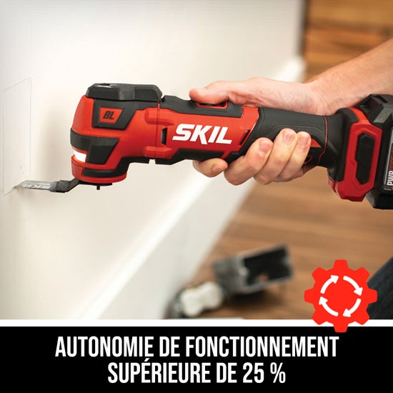 Le moteur sans balais de cet outil oscillant fournit une puissance compacte pour pratiquement tous les projets tels que le ponçage et la découpe de cloisons sèches. Cet outil polyvalent adaptable permet non seulement d’économiser de l’argent et de l’espace, mais il est également doté de la fonction Auto Sensing à six vitesses qui permet d’ajuster la vitesse sur place en fonction de votre projet. De plus, avec une pile au lithium PWRCORE 12™ avec charge mobile PWRASSIST™ et un chargeur PWRJUMP™, vous aurez plus de puissance au travail pendant de plus longues périodes. Cela veut dire que vous pourrez cocher votre liste de choses à faire plus rapidement !