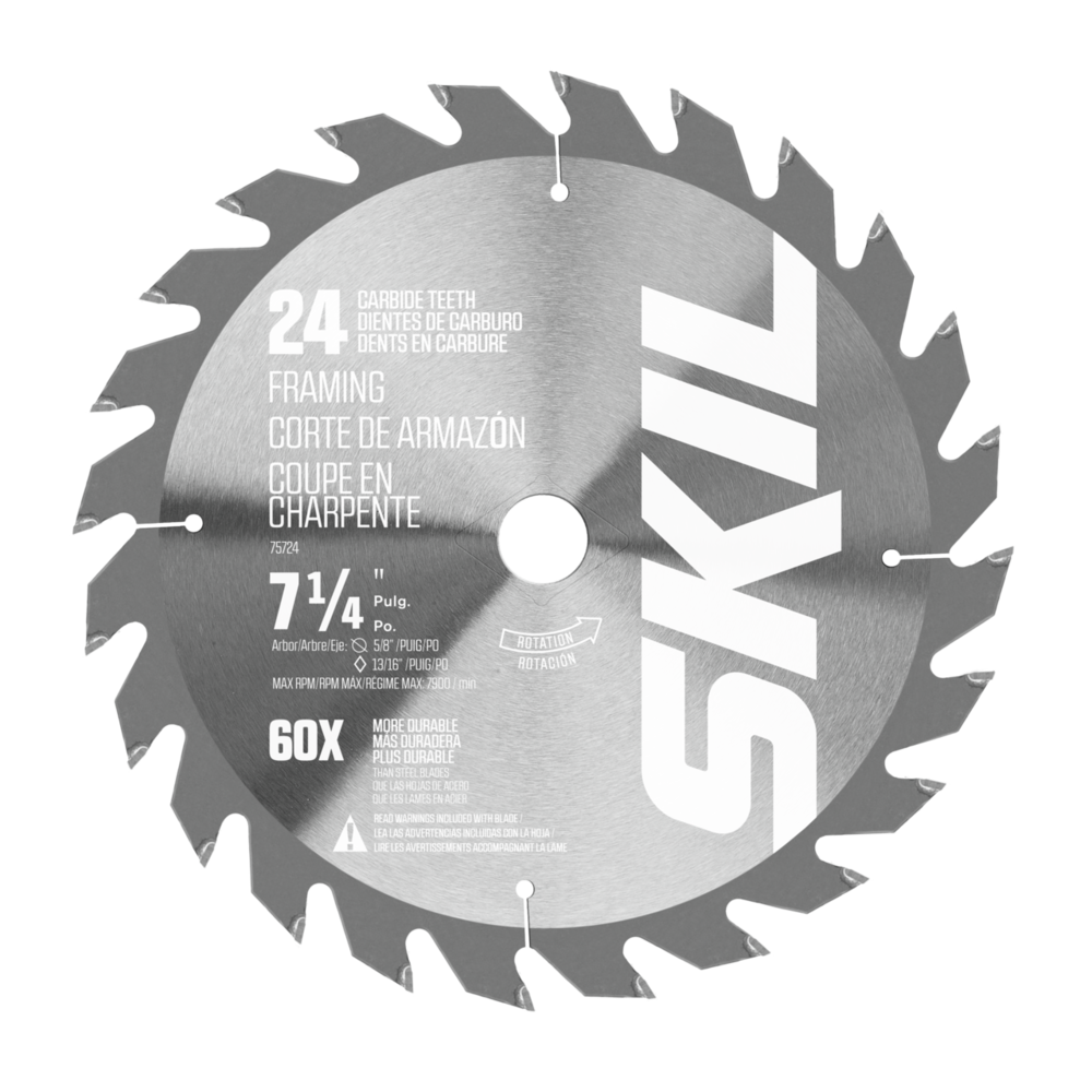 Que vous coupiez du plastique, des terrasses en matériaux composites, du bois, du contreplaqué ou de la mélamine, réalisez rapidement des coupes longitudinales et des coupes transversales avec la lame de scie circulaire de 24 dents à pointe en carbure SKIL de 7-1/4 po. Cette lame de scie circulaire est dotée de dents en carbure à biseau supérieur alterné, durcies par induction, conçues pour rester affûtées et prolonger la durée de vie de votre tranchant. Un revêtement antiadhésif transparent réduit les frottements et la chaleur, ce qui évite les coincements. Le revêtement empêche également la rouille et l’oxydation, ce qui permet aux lames de rester tranchantes et prêtes à l’emploi. Un trait de scie fin permet aux lames de scies circulaires de tourner plus rapidement et plus facilement pour produire des performances optimales, tandis que les fentes d’expansion réduisent les vibrations et garantissent que les lames fonctionnent avec une grande exactitude et une grande précision. L’arbre d’éjection en forme de diamant vous permet de choisir entre un arbre traditionnel de 5/8 po et un arbre d’éjection en forme de diamant pour assurer une compatibilité avec une gamme plus large de scies circulaires avec ou sans fil pour la construction de charpentes et les coupes à usage général.
