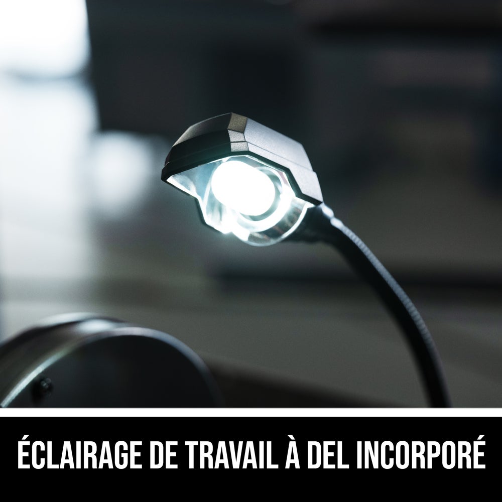 - LAMPE DE TRAVAIL À DEL INTÉGRÉE SUR LES DEUX ROUES—Maintient l’ouvrage éclairé pour une visibilité maximale