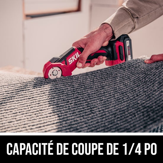 Le kit d’outil à plusieurs éléments tranchants SKIL PWRCore 12™ de 12 V tranche les matériaux résistants comme la moquette, le carton, le tissu et le cuir, tandis que la lame auto-affûtante permet une utilisation sans interruption. La pile est dotée d’un port USB intégré qui permet de recharger vos appareils en déplacement, tandis que la poignée légère et ergonomique réduit la fatigue de l’utilisateur. Qu’il s’agisse de poser une nouvelle moquette, de casser des cartons ou de couper du papier d’emballage, cet outil permet d’effectuer le travail à accomplir en douceur. Le kit comprend l’outil à plusieurs éléments tranchants de 12 V, la pile de 12 V, 2,0 Ah et le chargeur.