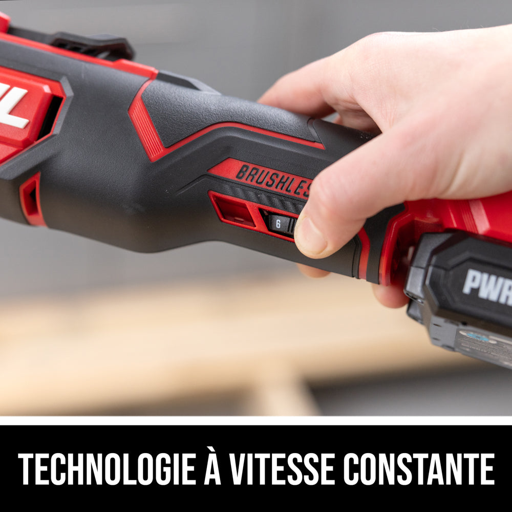 - TECHNOLOGIE À VITESSE CONSTANTE - Produit plus de puissance en cas de besoin pour s’attaquer à des matériaux durs.