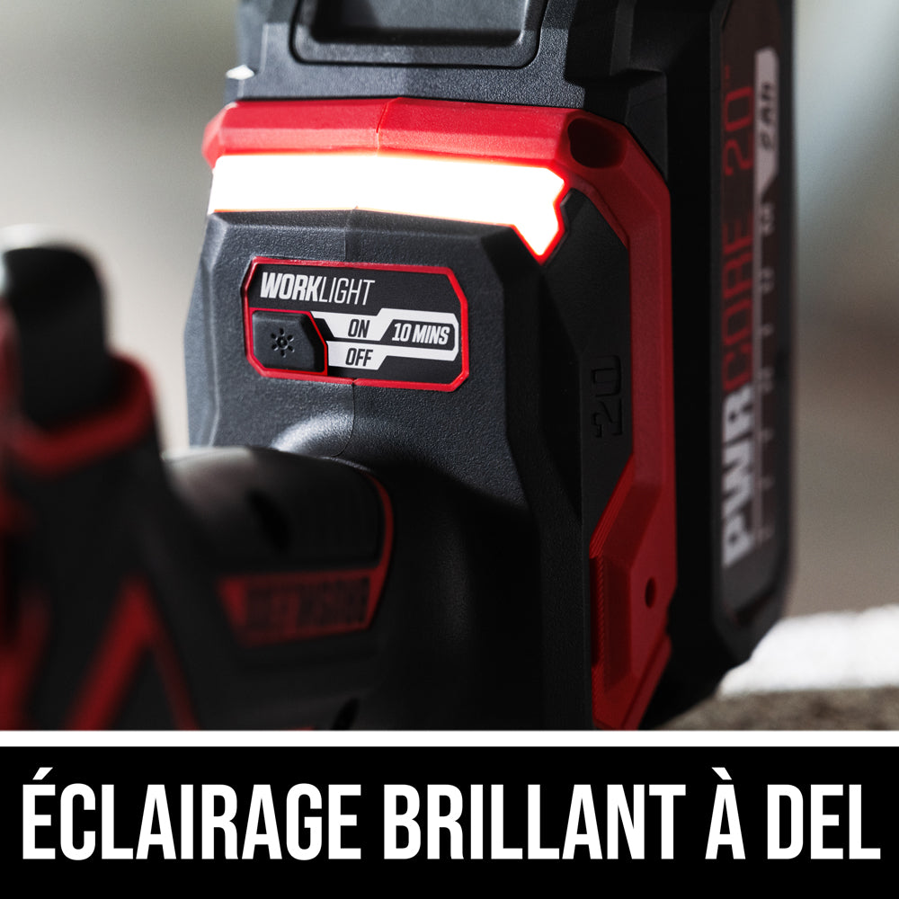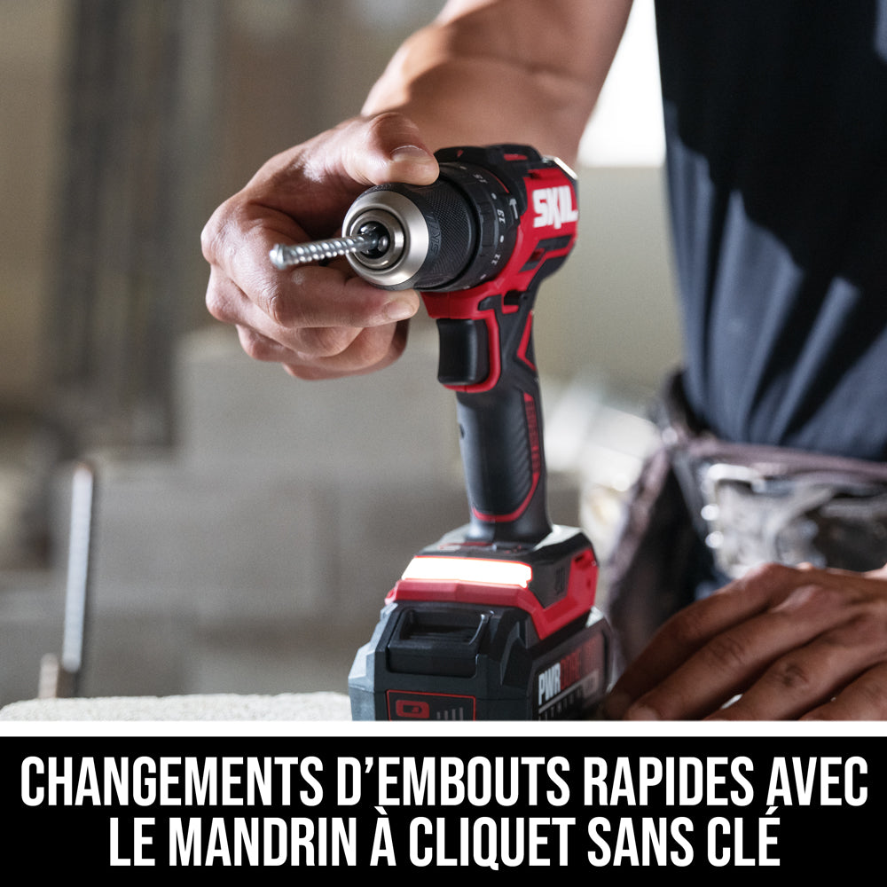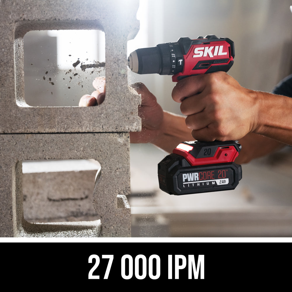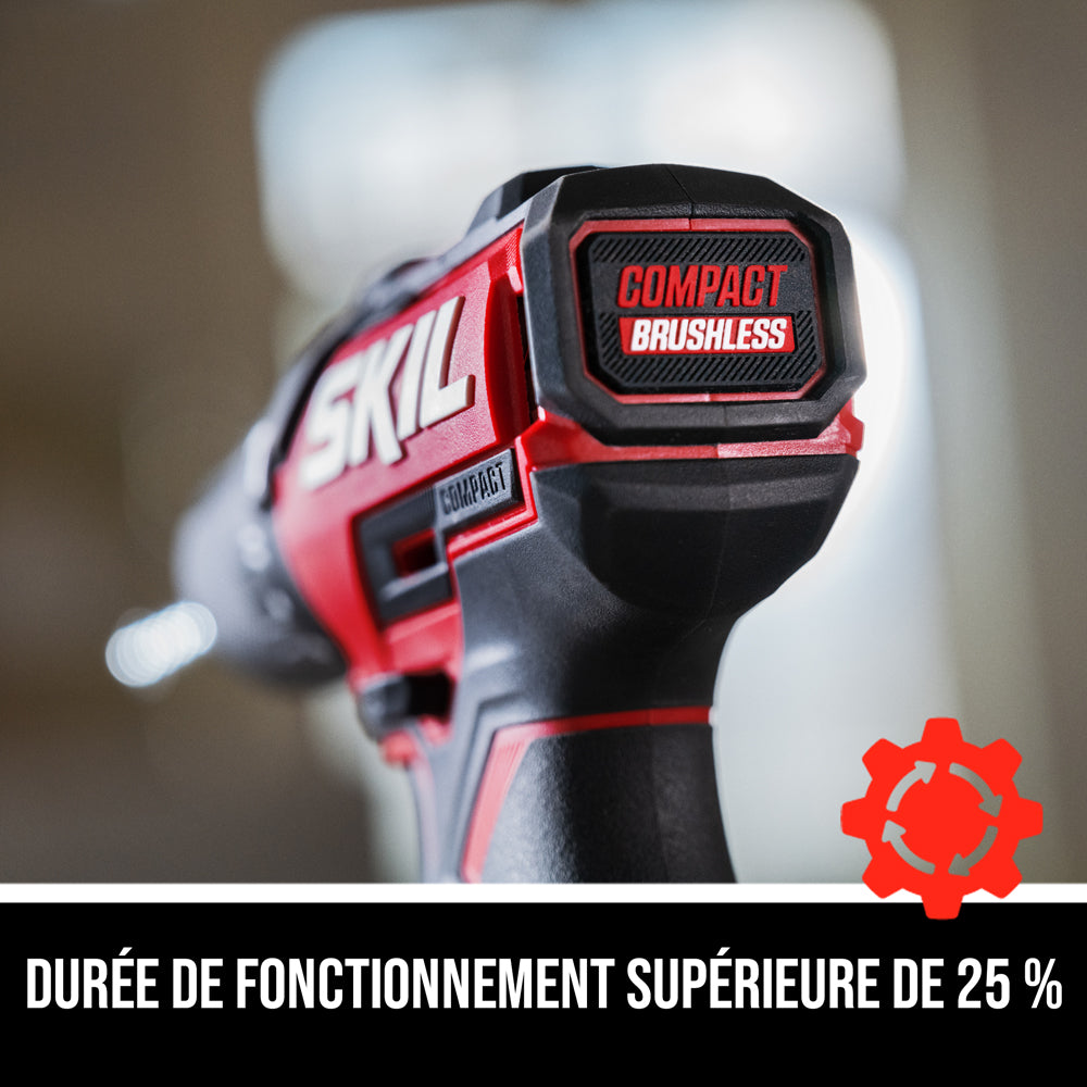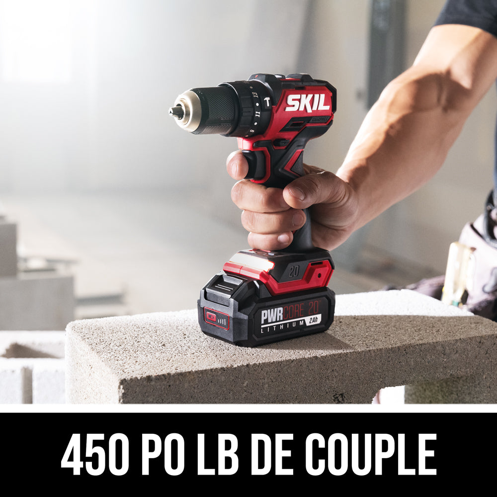 Que vous travailliez dans le bois dur, la pierre, le béton ou la brique, la perceuse à percussion compacte SKIL PWRCORE 20™ Brushless 20 V 1/2 pouce vous offre la précision et la puissance compacte nécessaires à toutes vos applications. Le moteur numérique sans balais de cette perceuse à percussion compacte sans fil offre un couple allant jusqu'à 450 pouces-livres et 27 000 coups/min, avec 17 réglages de couple pour diverses applications de vissage et de perçage. Passez facilement du mode perceuse à percussion, perceuse et visseuse, et changez rapidement d'embout grâce au mandrin à cliquet sans clé à manchon unique de 1/2 pouce. Une lampe de travail LED innovante offre un éclairage plus large et plus intense, éclairant tout votre espace de travail jusqu'à 10 minutes. Cette perceuse à percussion compacte est compatible avec toutes les piles PWRCORE 20™ (disponibles séparément), dotées d'une technologie de pointe qui enveloppe chaque cellule d'un matériau de refroidissement pour une autonomie 25 % supérieure et une durée de vie multipliée par deux.