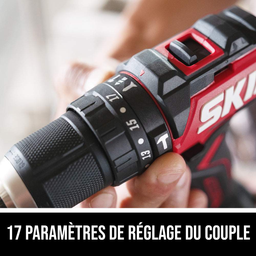 - CONTRÔLE PRÉCIS DE LA VITESSE — Répond à toutes les applications de vissage grâce à 17 réglages de couple, un mode perçage et une gâchette à vitesse variable.